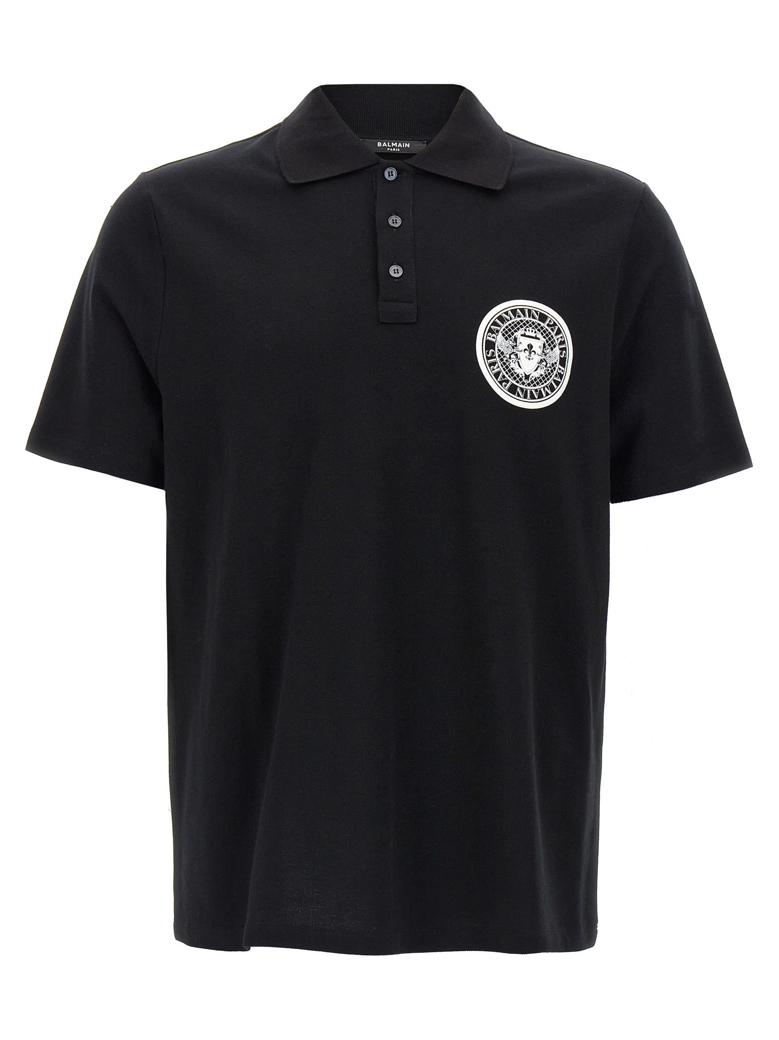 Piqué cotton polo shirt with front 'Coin' print, collar and buttons, short sleeves.