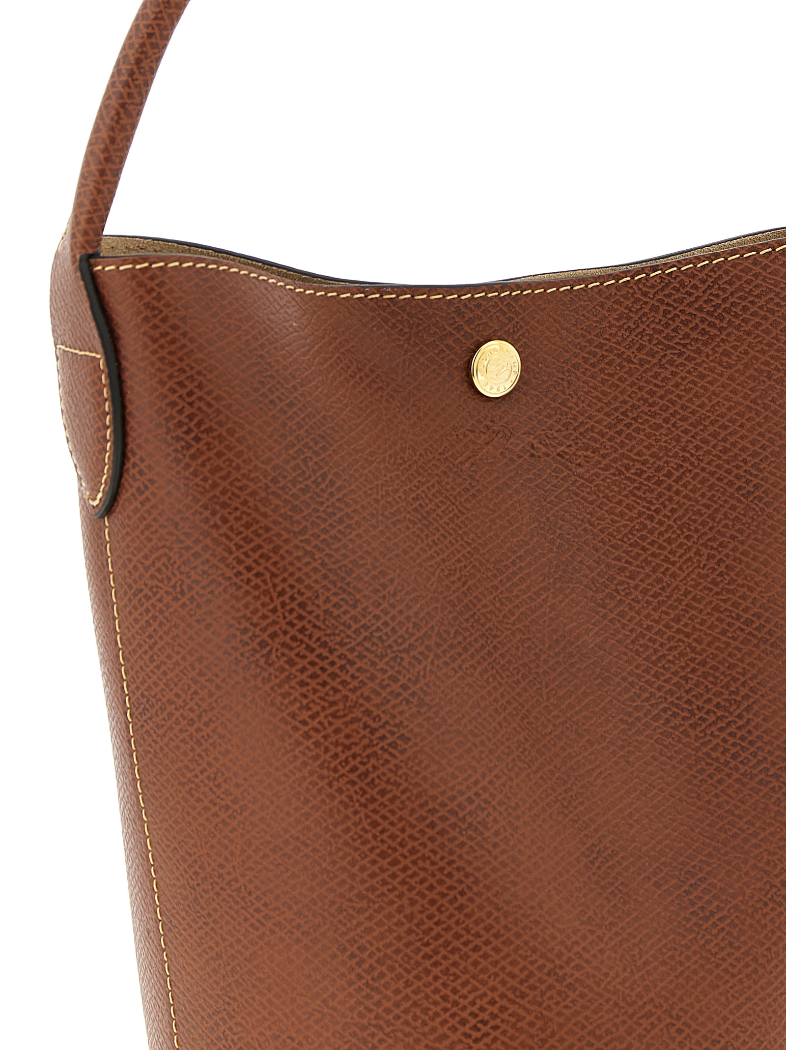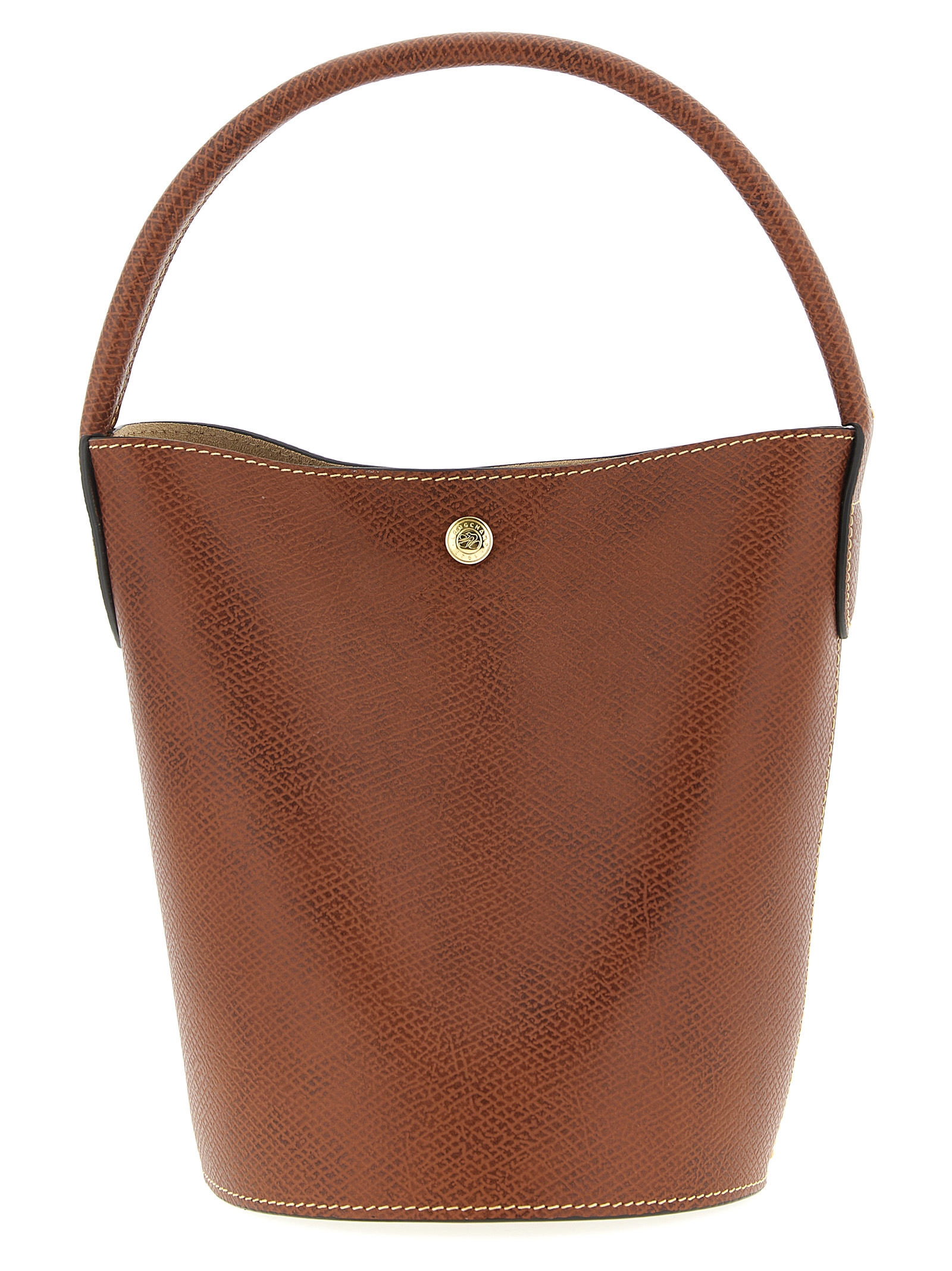 ‘S Épure’ bucket bag in fine-grain Russian leather, embossed logo on the front, double fixed handles, snap button closure, adjustable and removable shoulder strap. The leather used in Longchamp bags may vary slightly due to the nature of the raw material used in our workshops. These variations are a sign of authenticity and exceptional quality.
