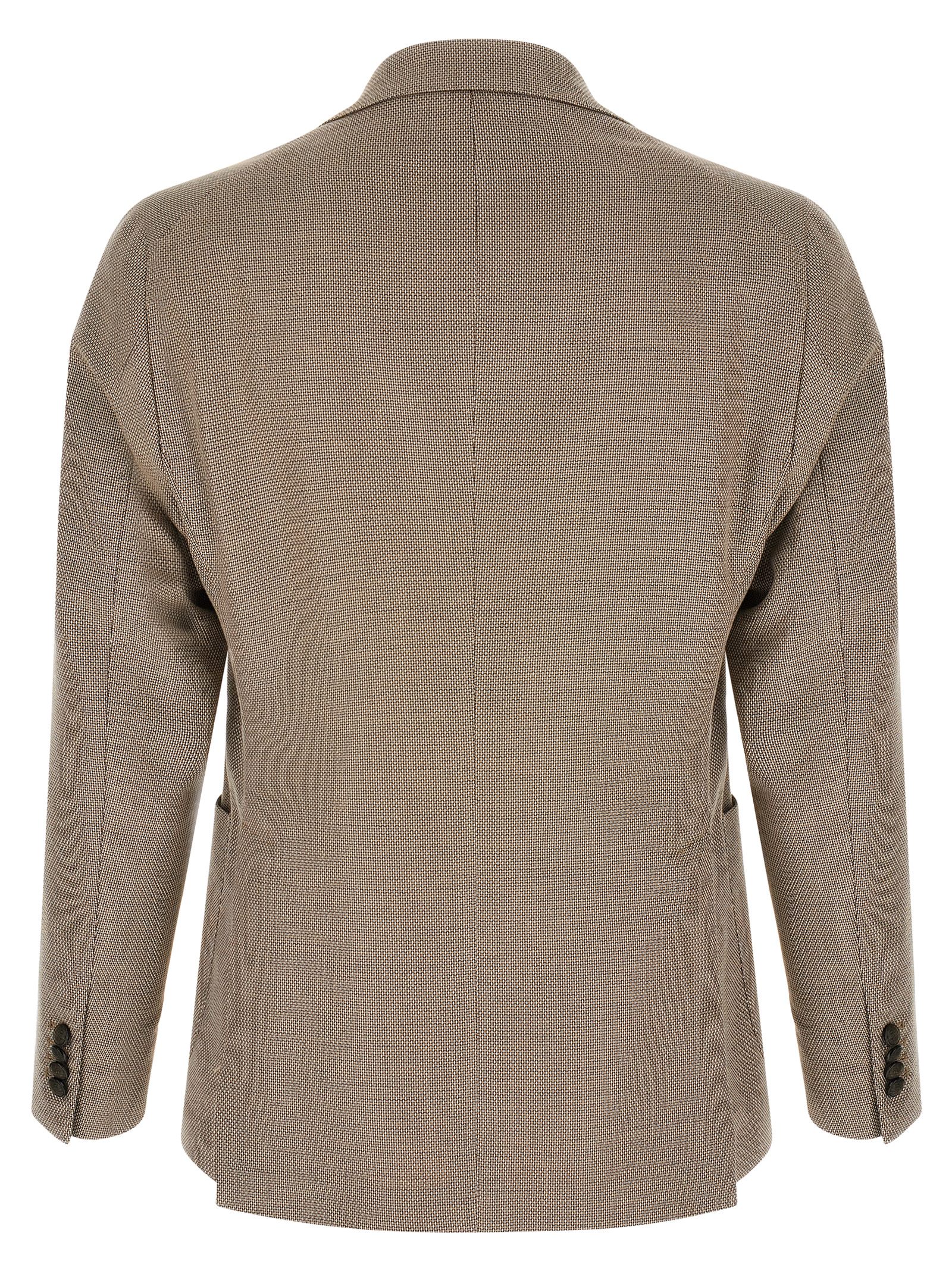 'Montecarlo' single-breasted stretch cotton and virgin wool blend blazer jacket with front metal button closure, tooth lapels with removable metal pin, pocket, patch pockets, unlined, three inner pockets, cuffs with open buttonholes, back vents.