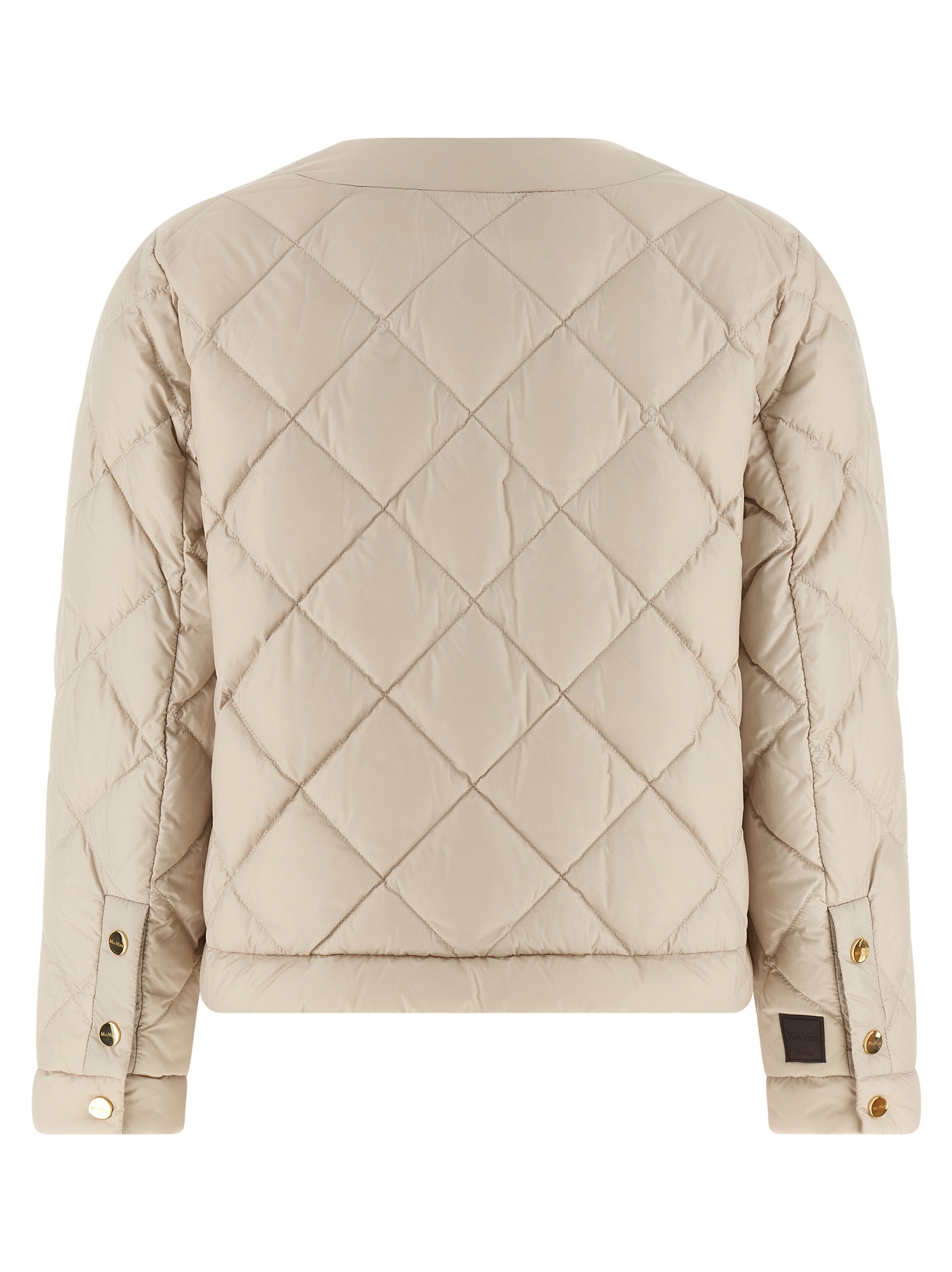 'MtcSofta' jacket in iridescent anti-drip canvas quilted with diamonds and slightly padded with goose down, crew neck, front zip closure, pockets, 3/4 sleeves with slit on the cuffs and snap buttons.