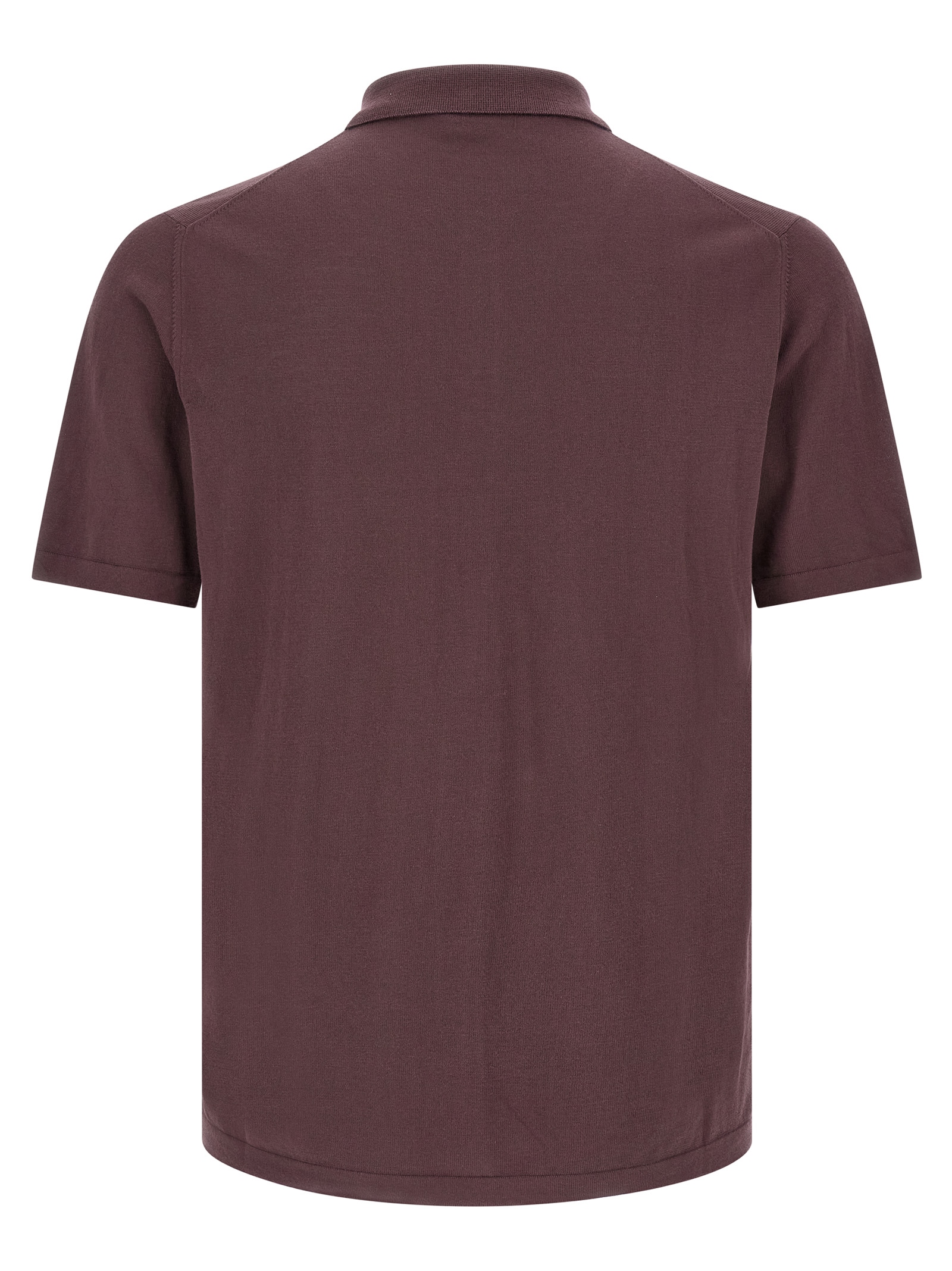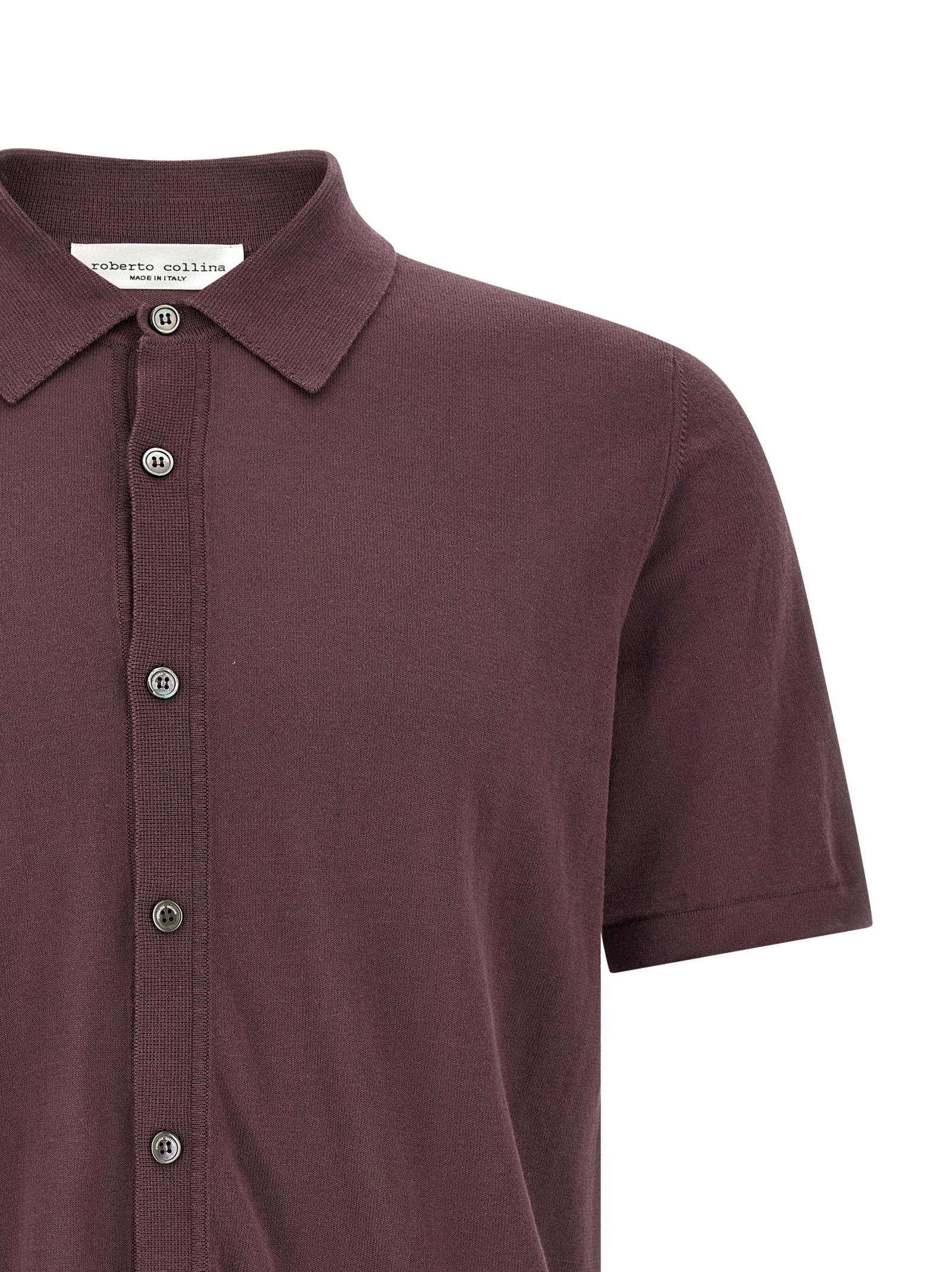 Cotton knit shirt with classic collar, front button closure, straight fit, short sleeves.