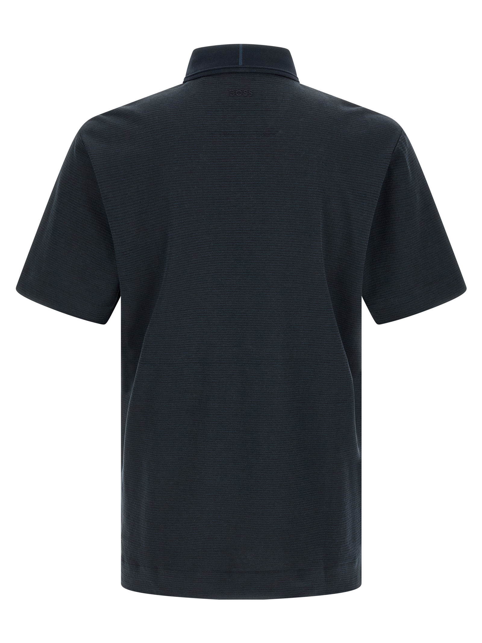 BOSS x Aston Martin 'C-Parris 248' polo shirt in linen and cotton blend with horizontal stripes, front logo patch, collar and buttons, short sleeves, side slits.