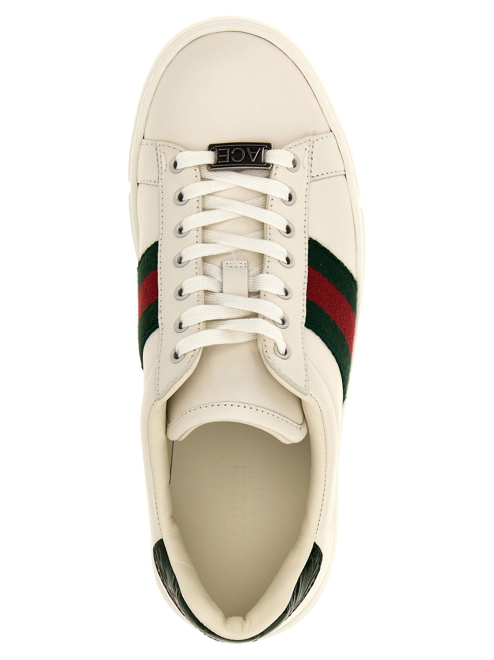 'Ace' leather sneakers with Web ribbon detail, laces closure, rubber sole.
