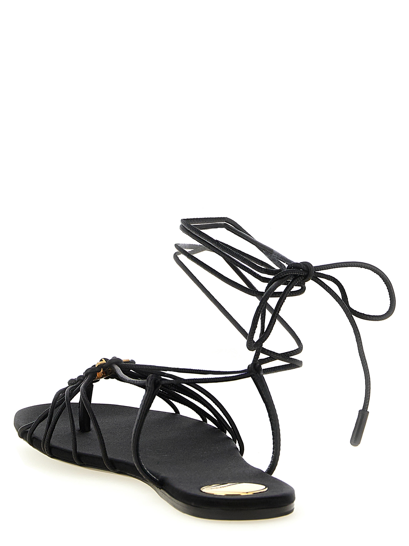 'Babylone' leather sandals with almond toe, crossed straps with metal 'Cassandre' logo detail on the front, to be tied at the ankle, satin insole, leather sole.