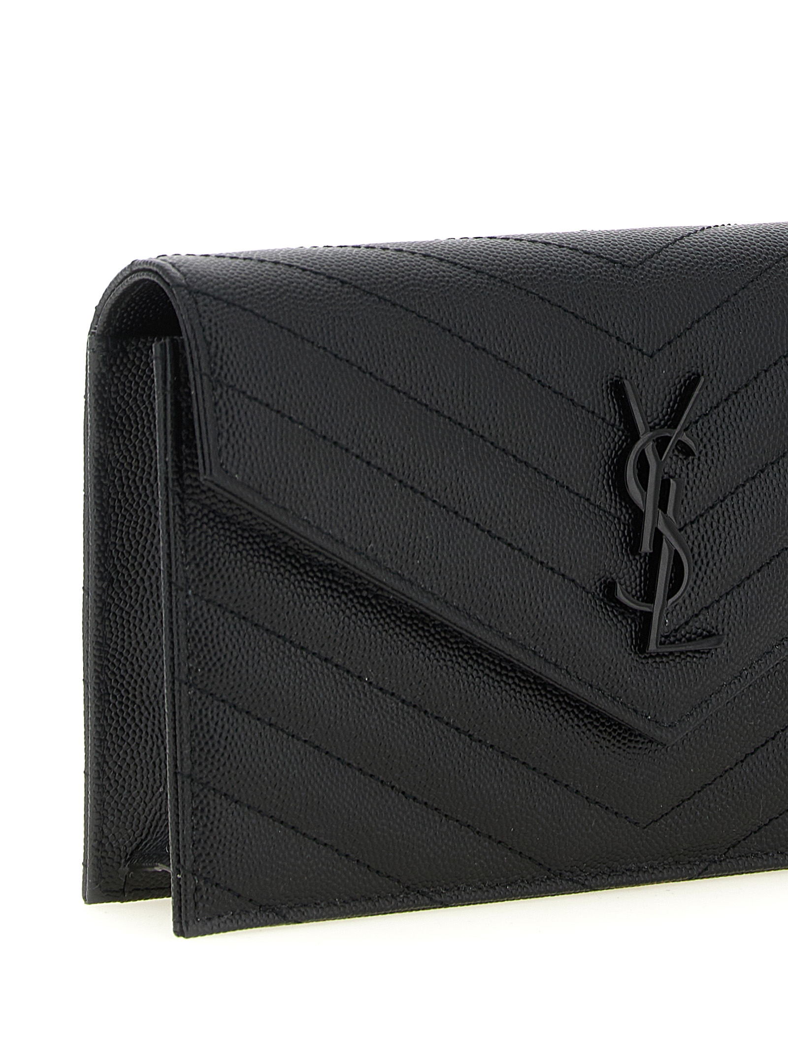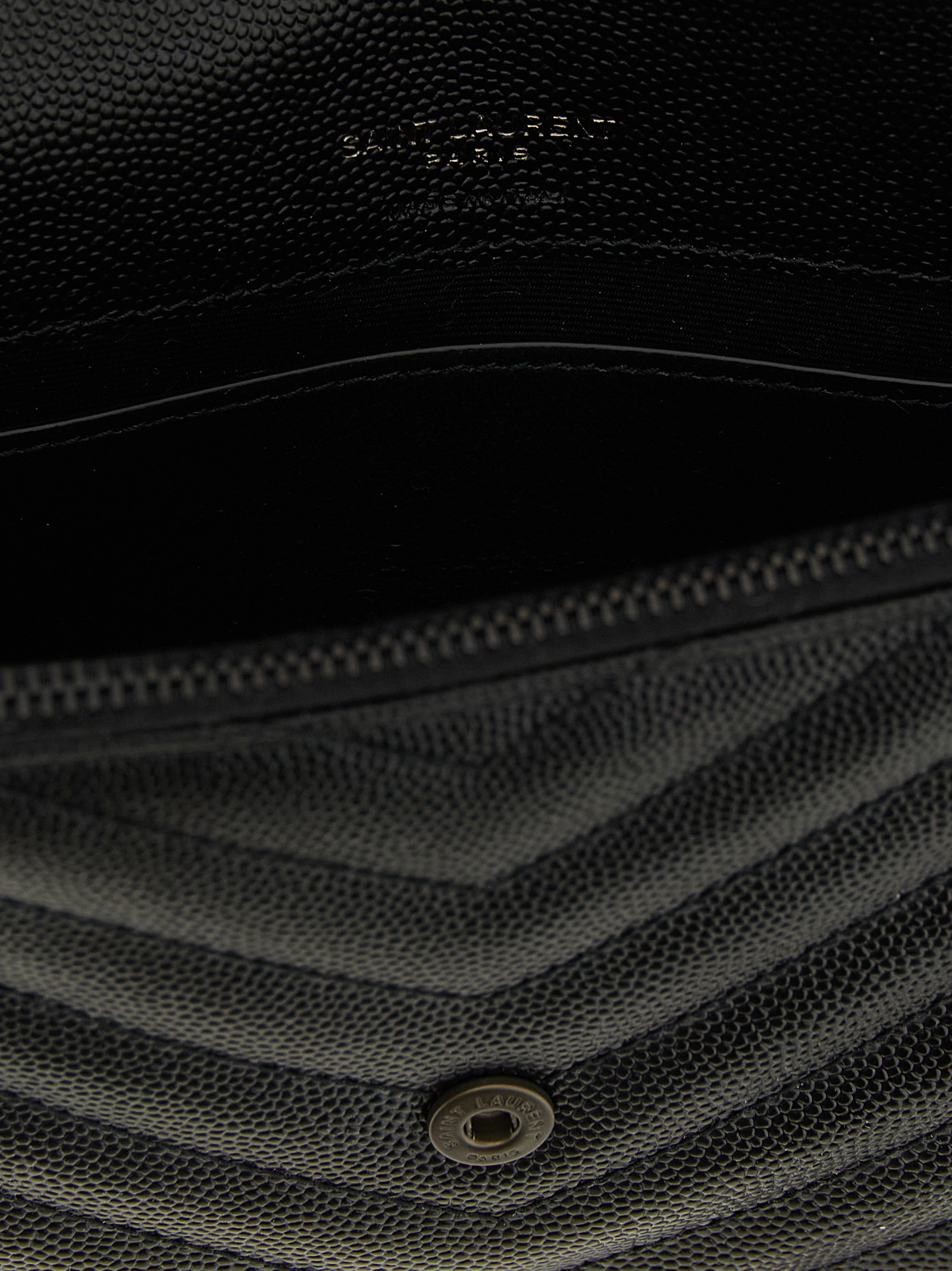 'Envelope' chevron quilted grain de poudre leather crossbody bag, flap closure with snap button and tonal brass 'Cassandre' logo applied on the front, envelope structure, grosgrain lining, chain shoulder strap with leather protection.