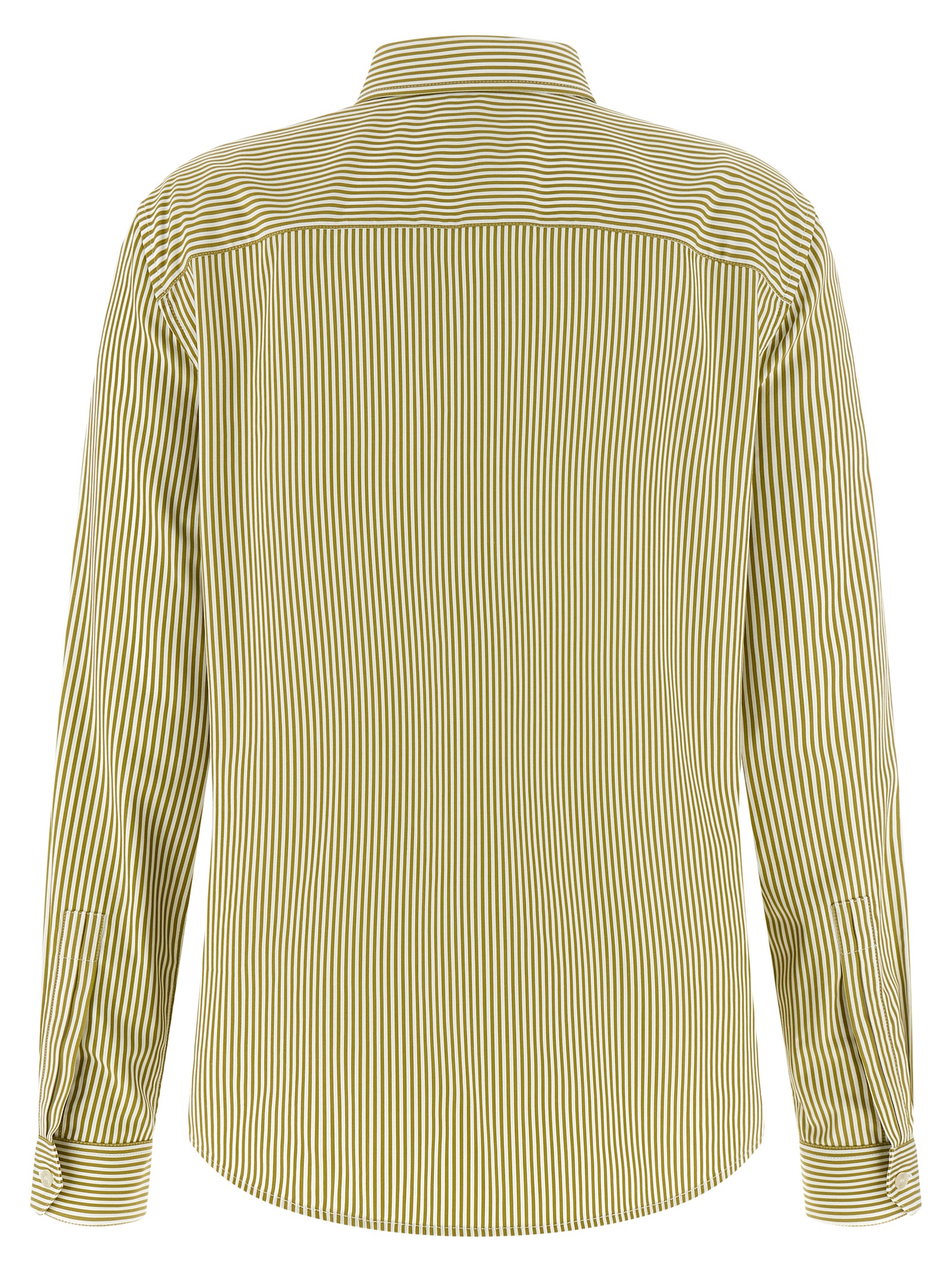 Striped cotton poplin shirt, pointed collar, breast pocket with 'Cassandre' lgoo embroidery, front mother-of-pearl button closure, long sleeves with one-button beveled cuffs, rounded hem.
