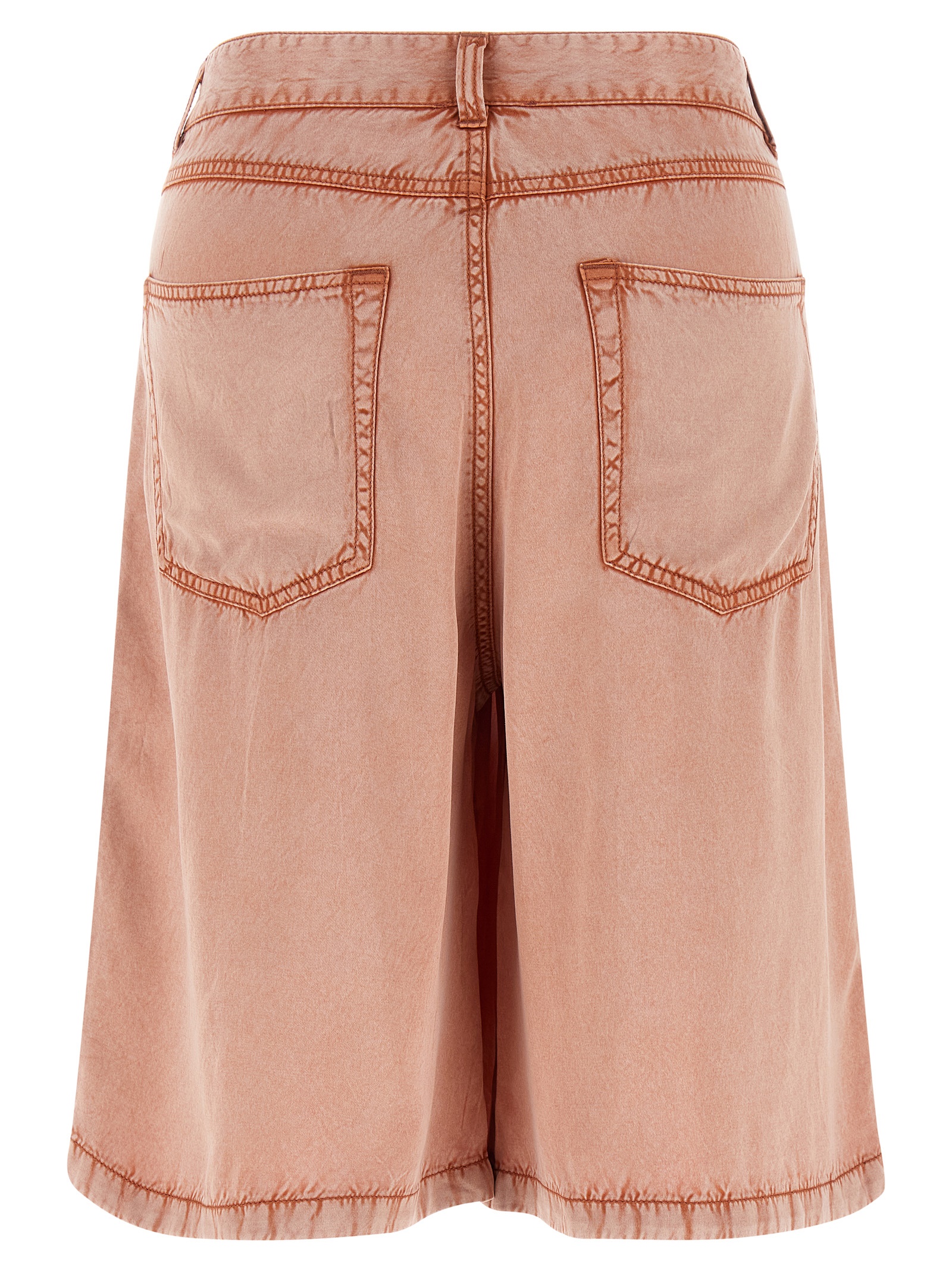 'P-Desi' fluid viscose bermuda shorts with trompe l'oeil jeans print, flared, wide leg, zip and front button closure, five pockets.
