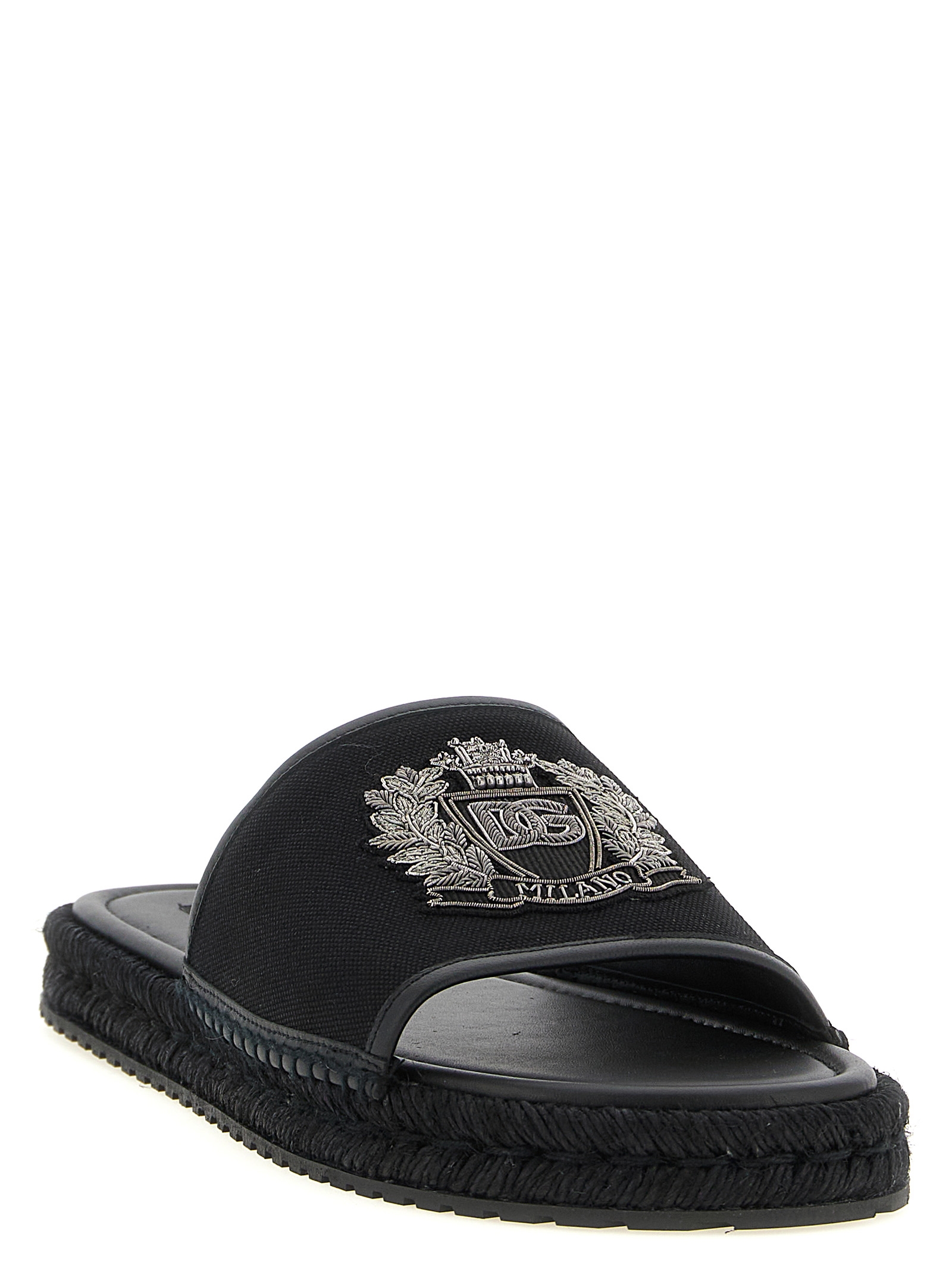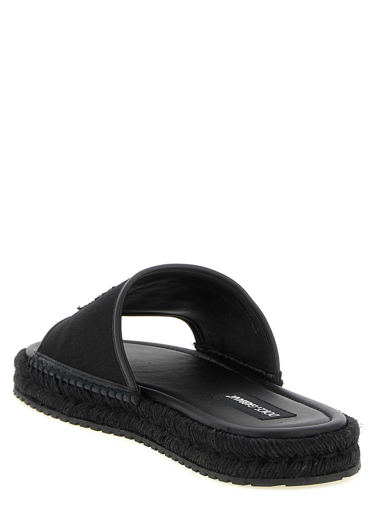 Leather espadrilles with canvas band with top logo patch, woven rope midsole, rubber sole.Product specifications