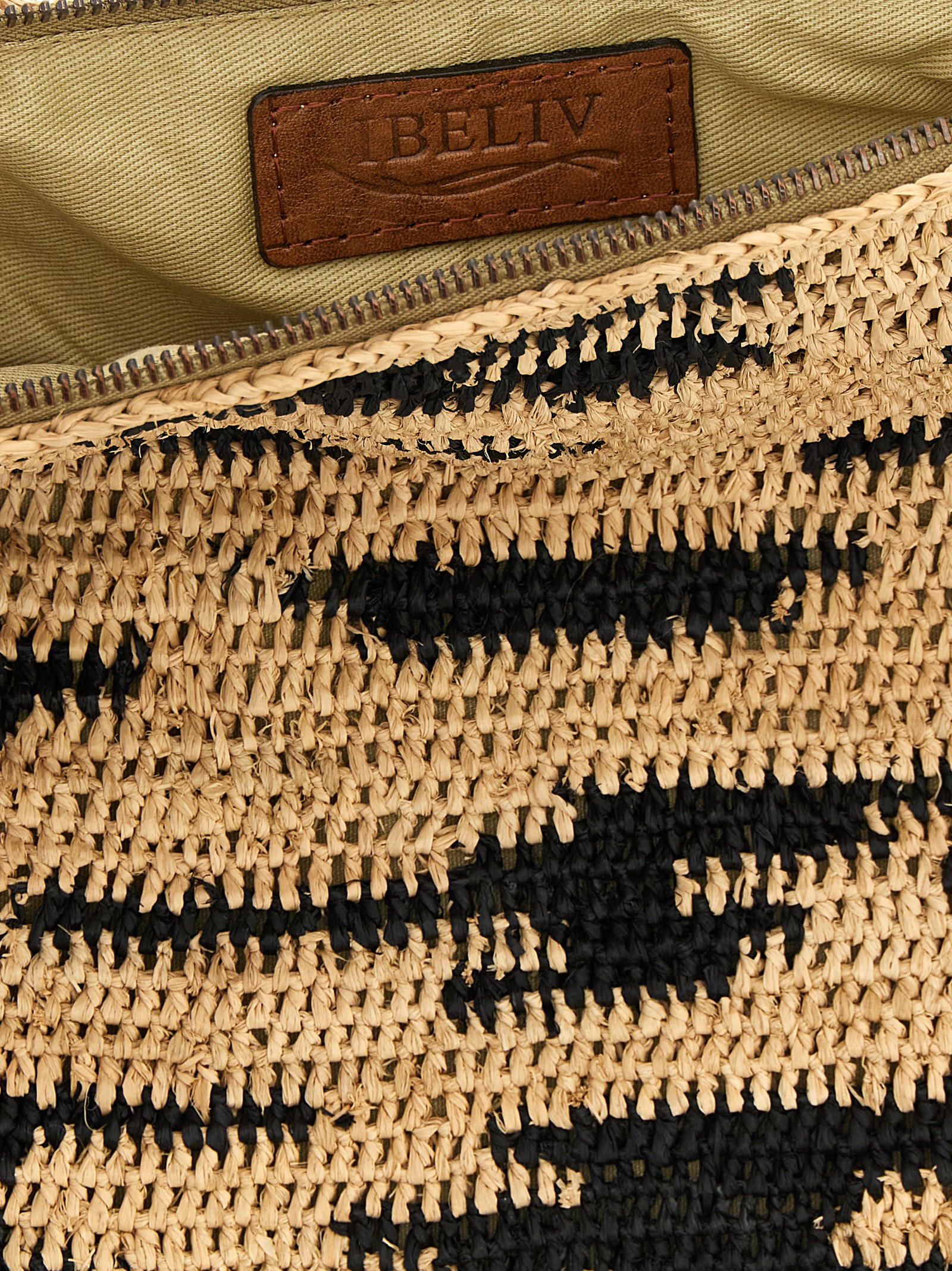 'Ampy' clutch bag in two-tone crochet raffia, leather handle, zip closure. Handcrafted product, any imperfections are to be considered characteristics of uniqueness.