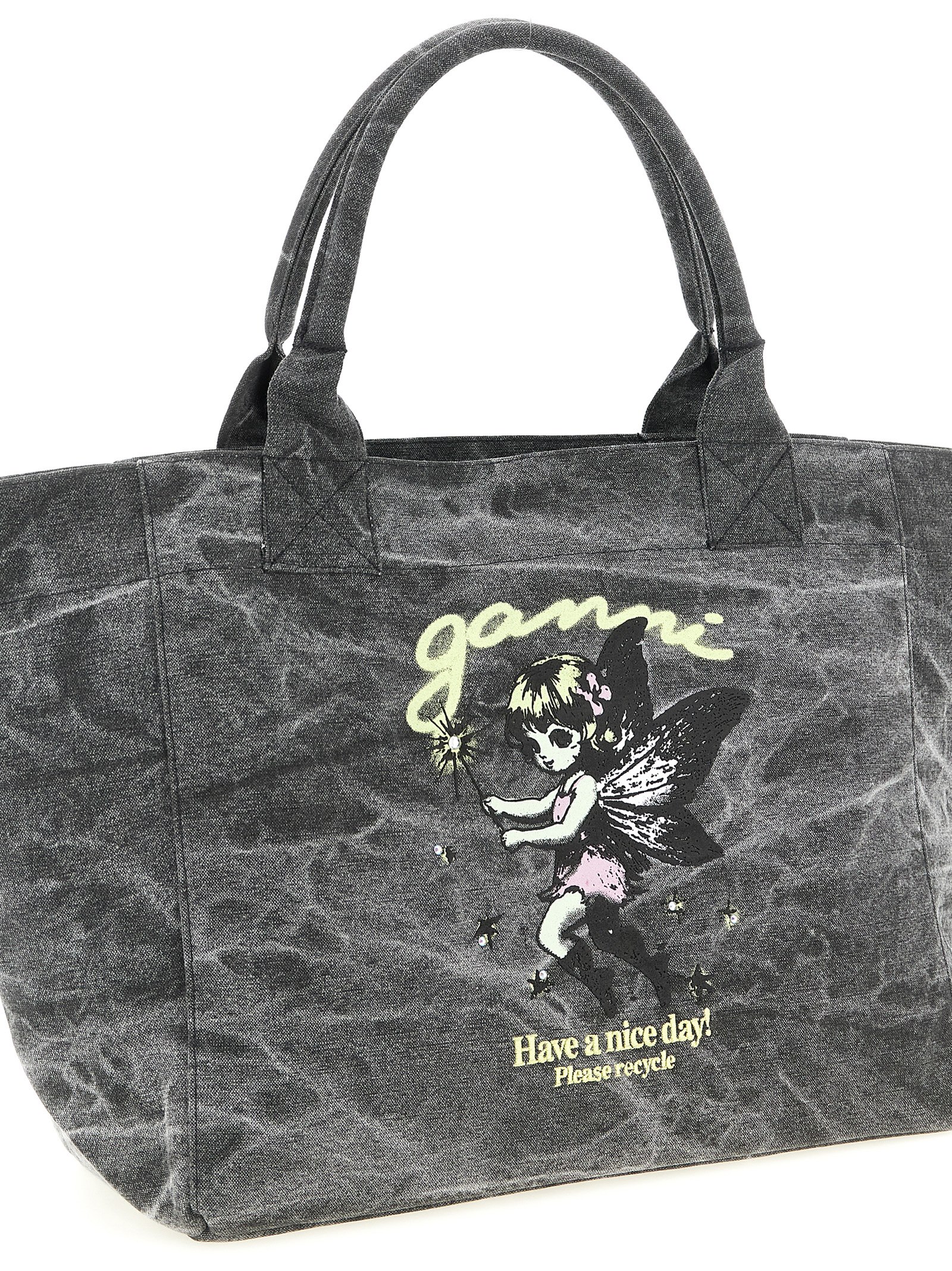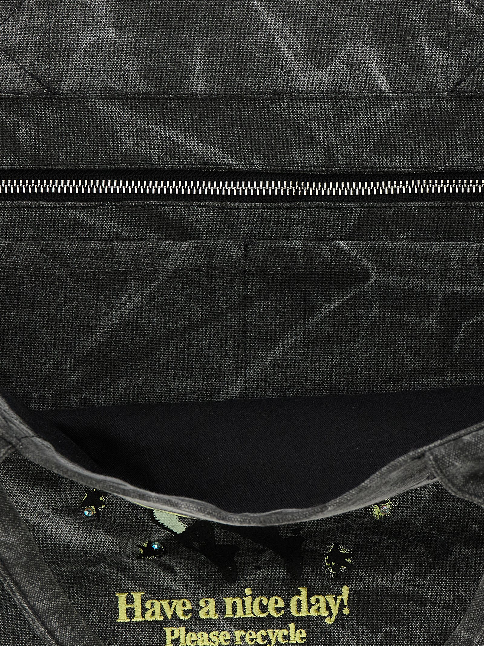 Medium shopping bag in stone-washed canvas, embroidery and front 'Fairy' print with crystal application, double fixed handle, and inside pocket. SUSTAINABLE: This product is made of organic cotton.