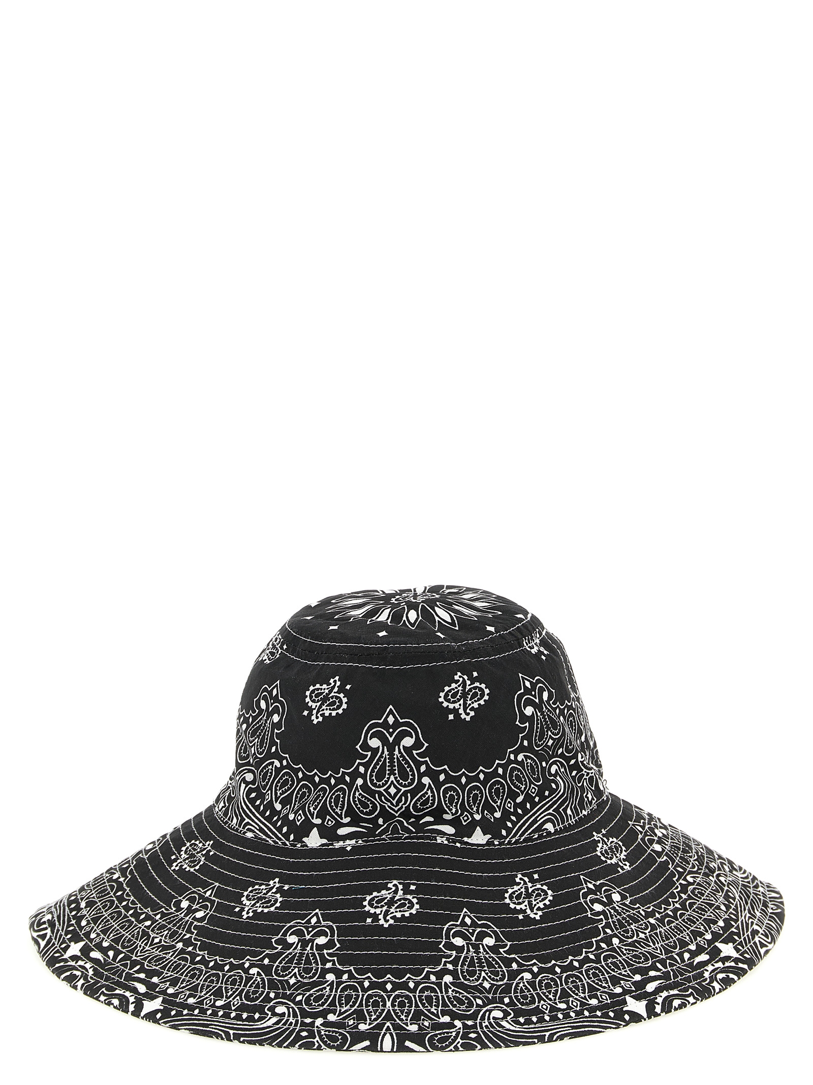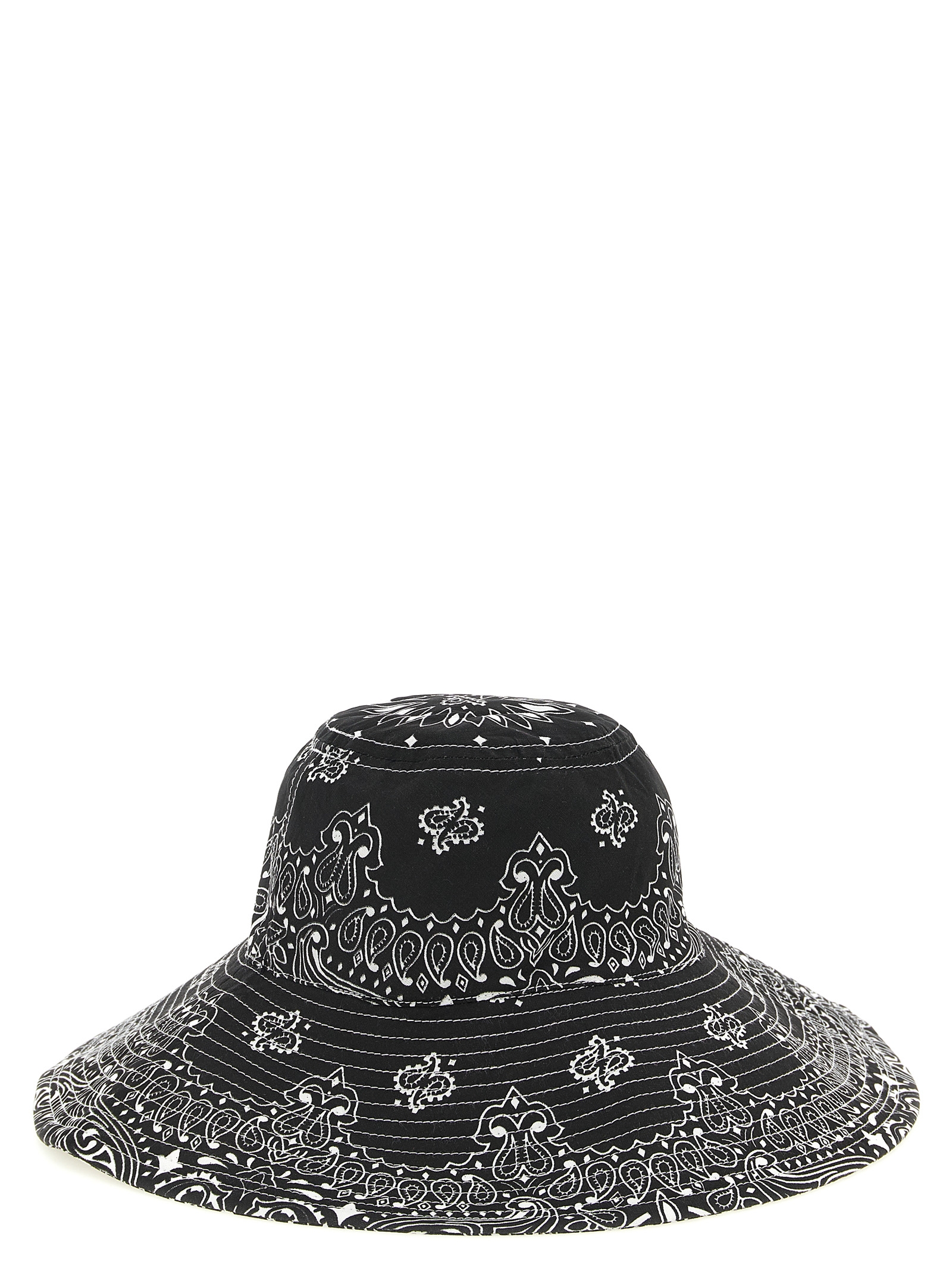 'Bandana' print cotton hat, wide-brimmed model with tie-up laces.