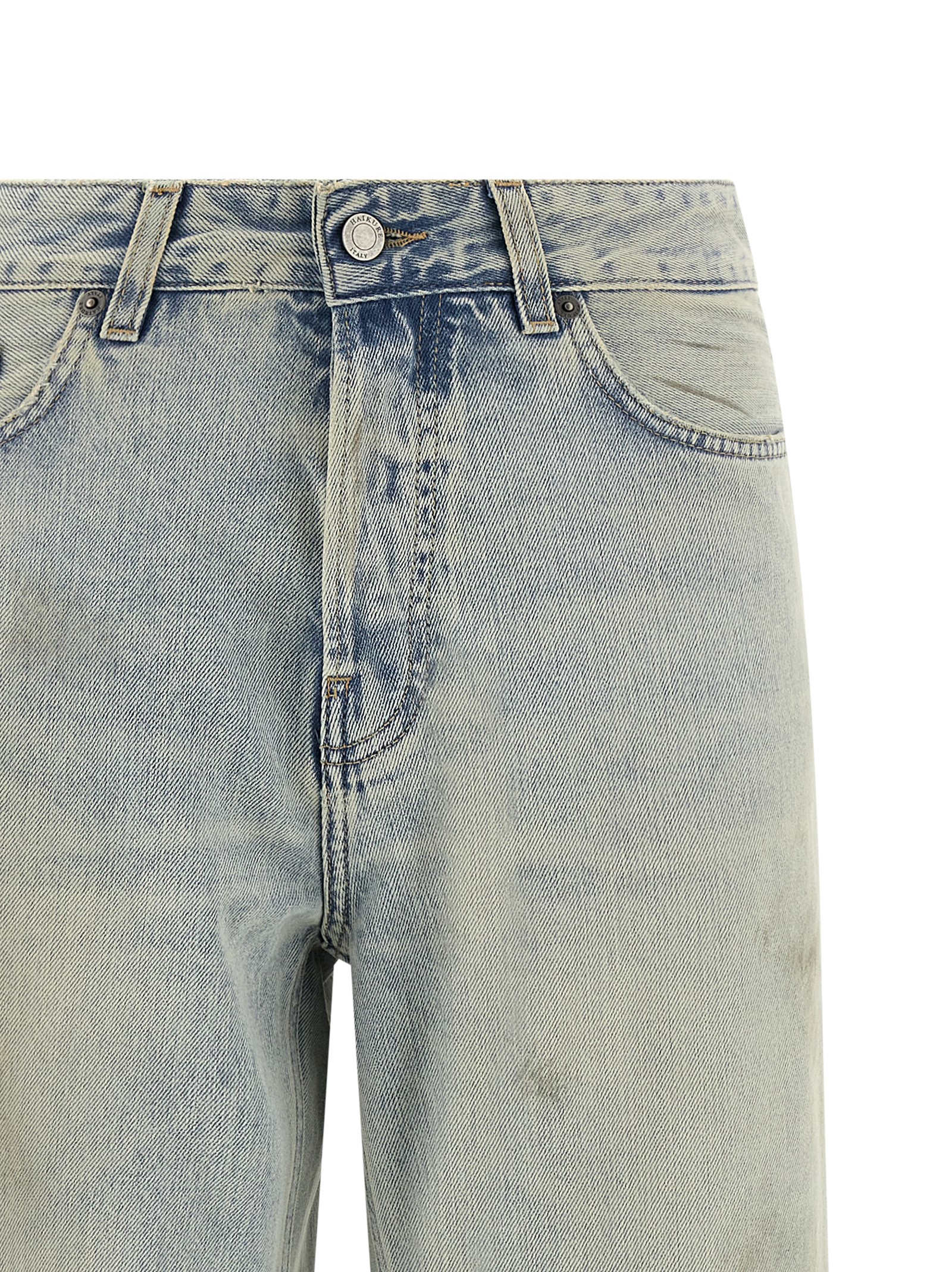 'Betty' used-effect stone washed cotton denim jeans, crop style, high waist, wide and straight leg, stretched pleat, front button closure, five pockets, back logo tag.