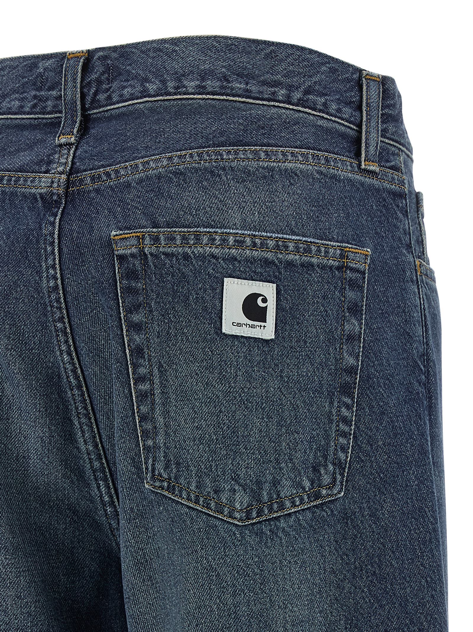 'Arin' stonewashed heavy Fairfield cotton denim jeans, tapered leg, regular waist, front zip and button closure, five pockets, back logo patch. SUSTAINABLE: This product is made of organic cotton.