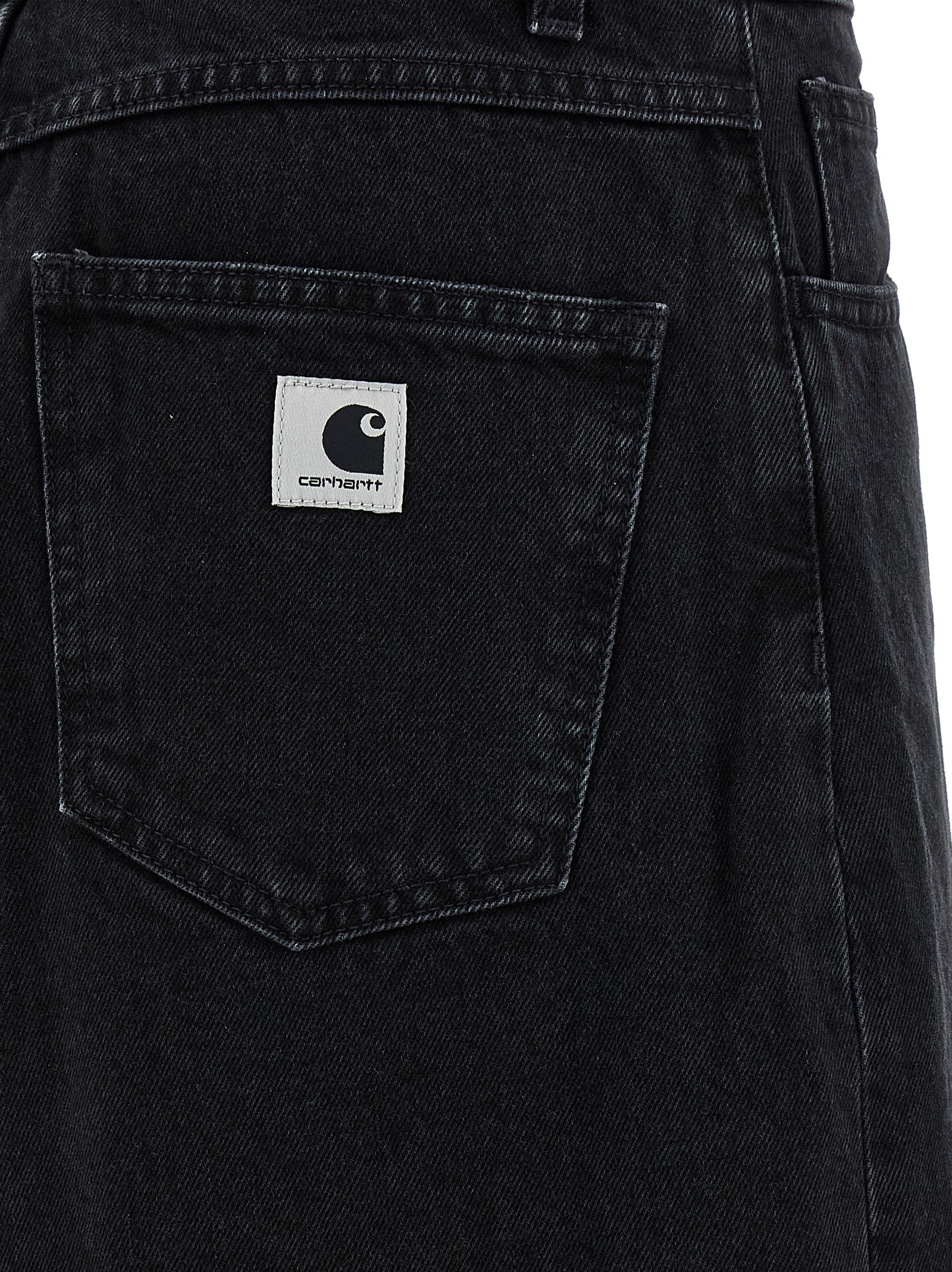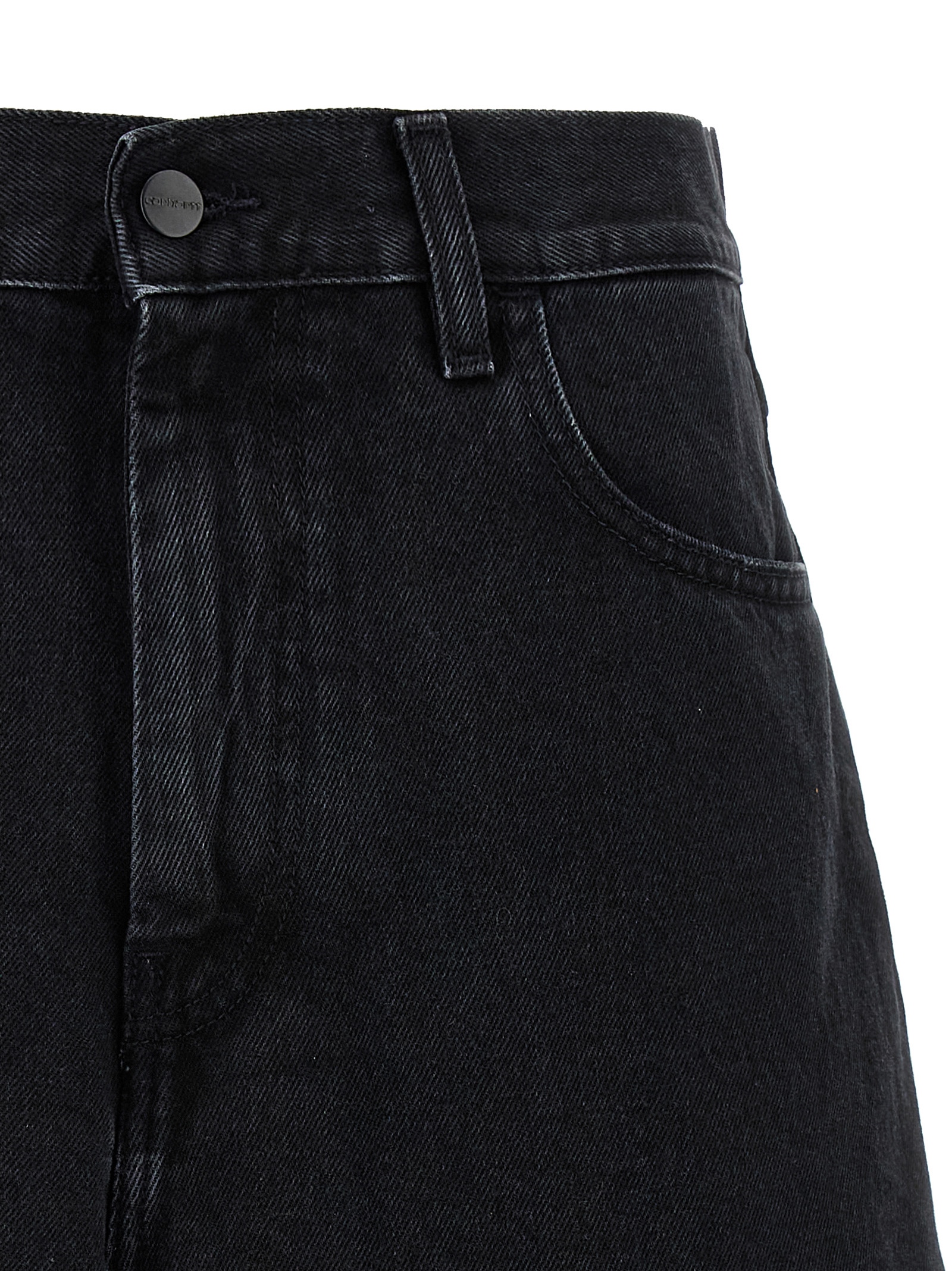 Smith heavy stone-washed 'Brandon' cotton denim bermuda shorts with low waist, wide leg, front zip and button closure, five pockets, back logo patch.