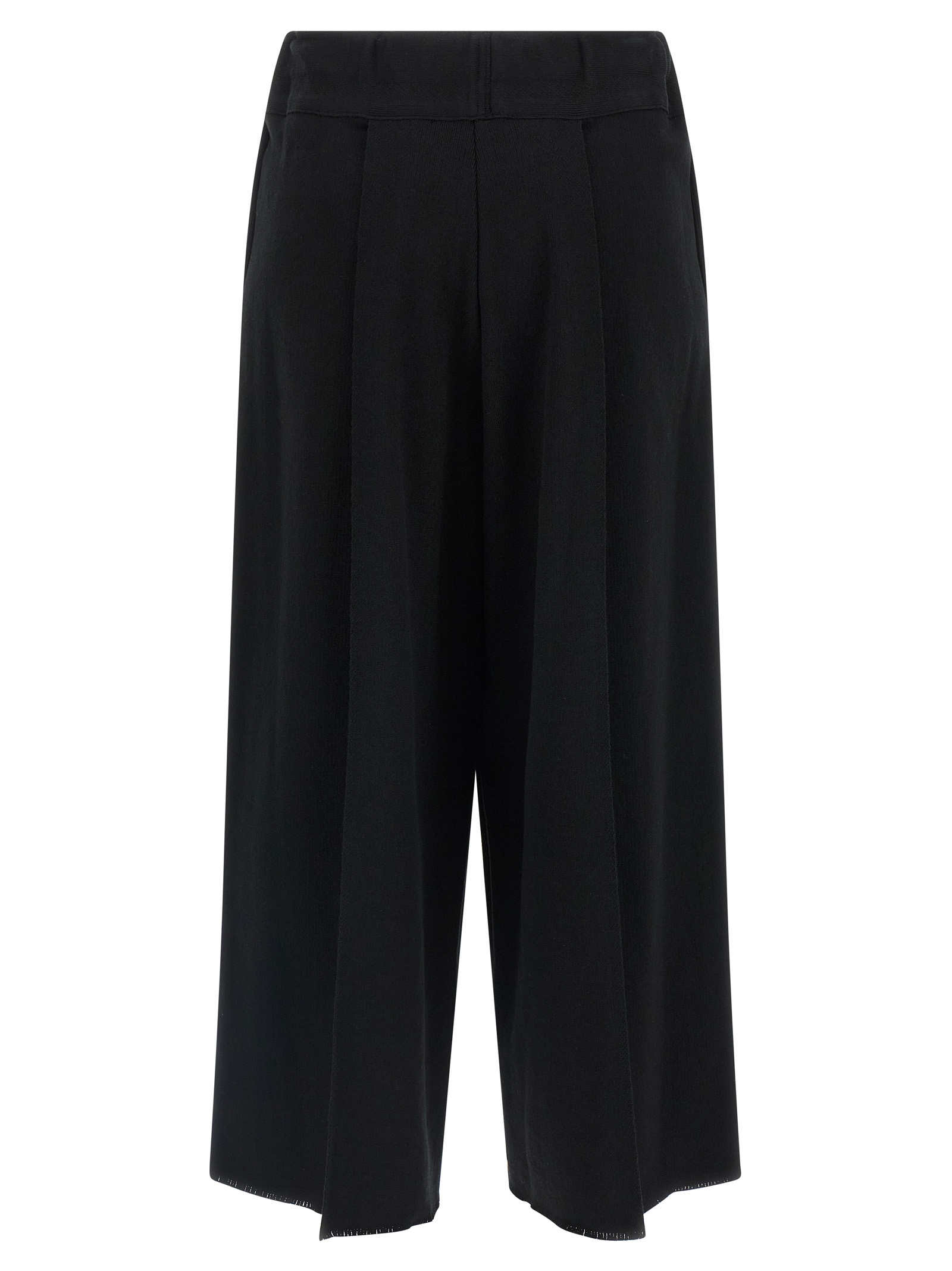 'Campagne' A-POC jersey pants of 9-gauge cotton blend, crop model, wide leg, front and back gusset pins, elastic waistband, pockets, leg bottoms with raw cut hem.