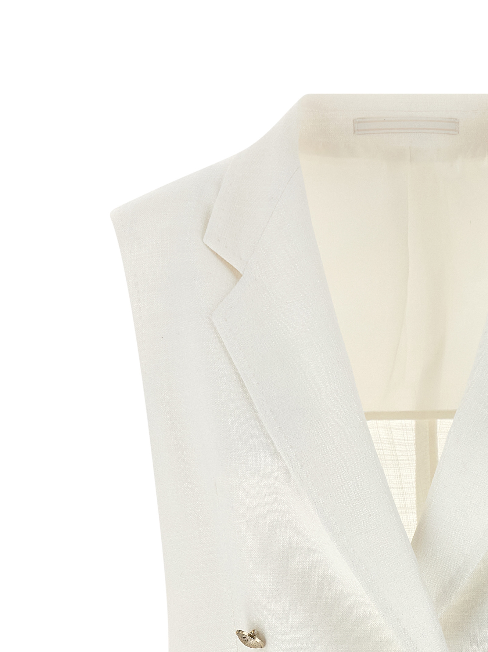 'Bernice' viscose blend vest with double-breasted blazer style with front metal button closure, mirror lapels, flap pockets, back split and half lining.
