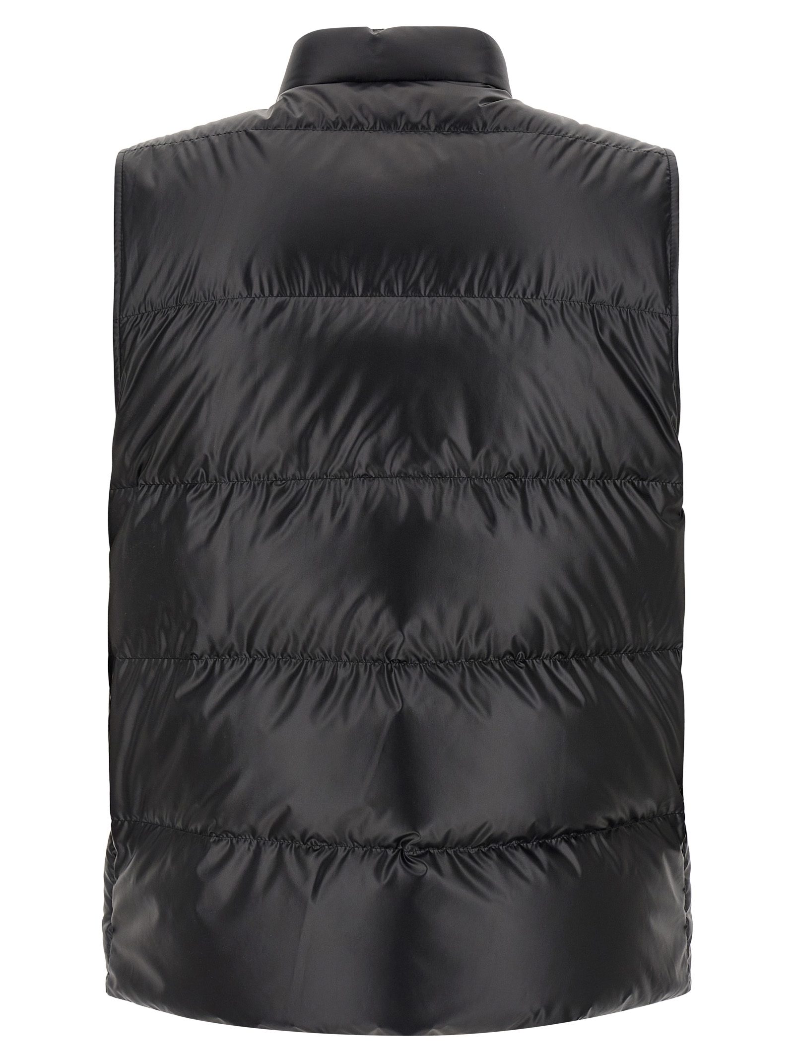 'Restigo' vest in quilted technical fabric with goose feather padding, standing collar, felt logo patch, front zip and snap button closure, pockets.