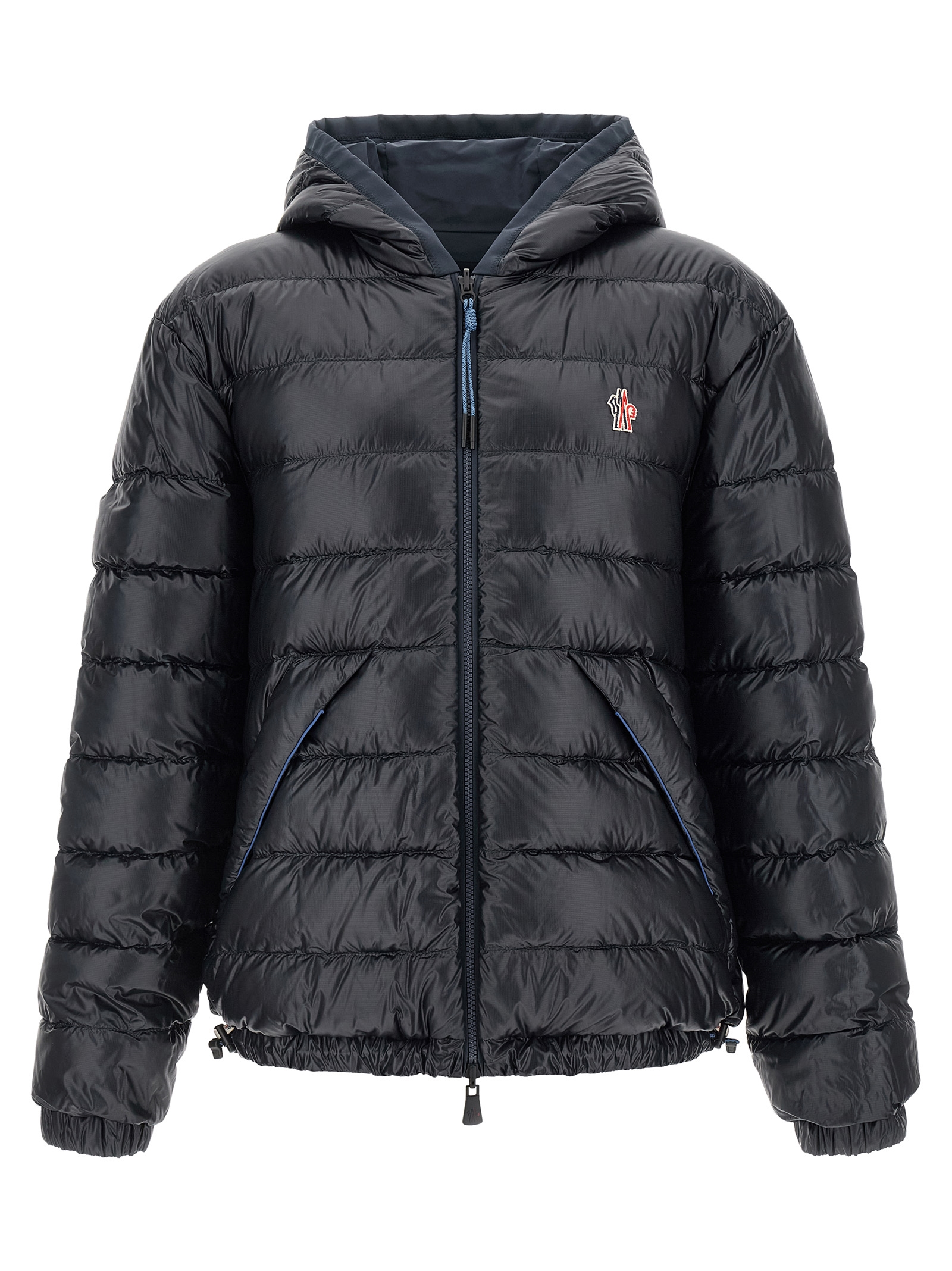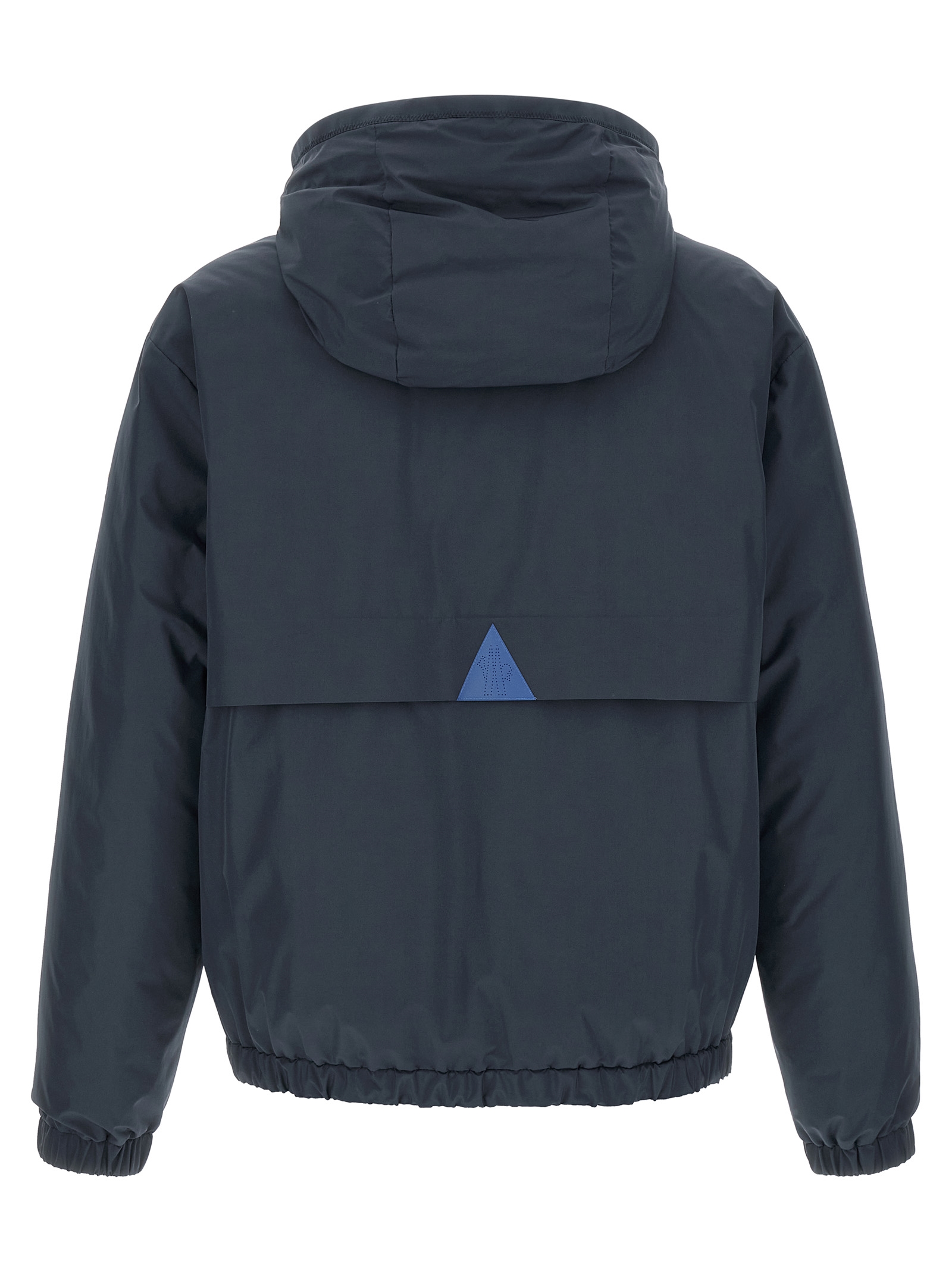'Berguns' reversible jacket in 2.5L of water-repellent technical cotton poplin and quilted micro ripstop with goose down padding, adjustable hood, logo print and front zip closure, pockets, long sleeves with elastic cuffs and logo patch appliqué, elastic with drawstring on the hem.