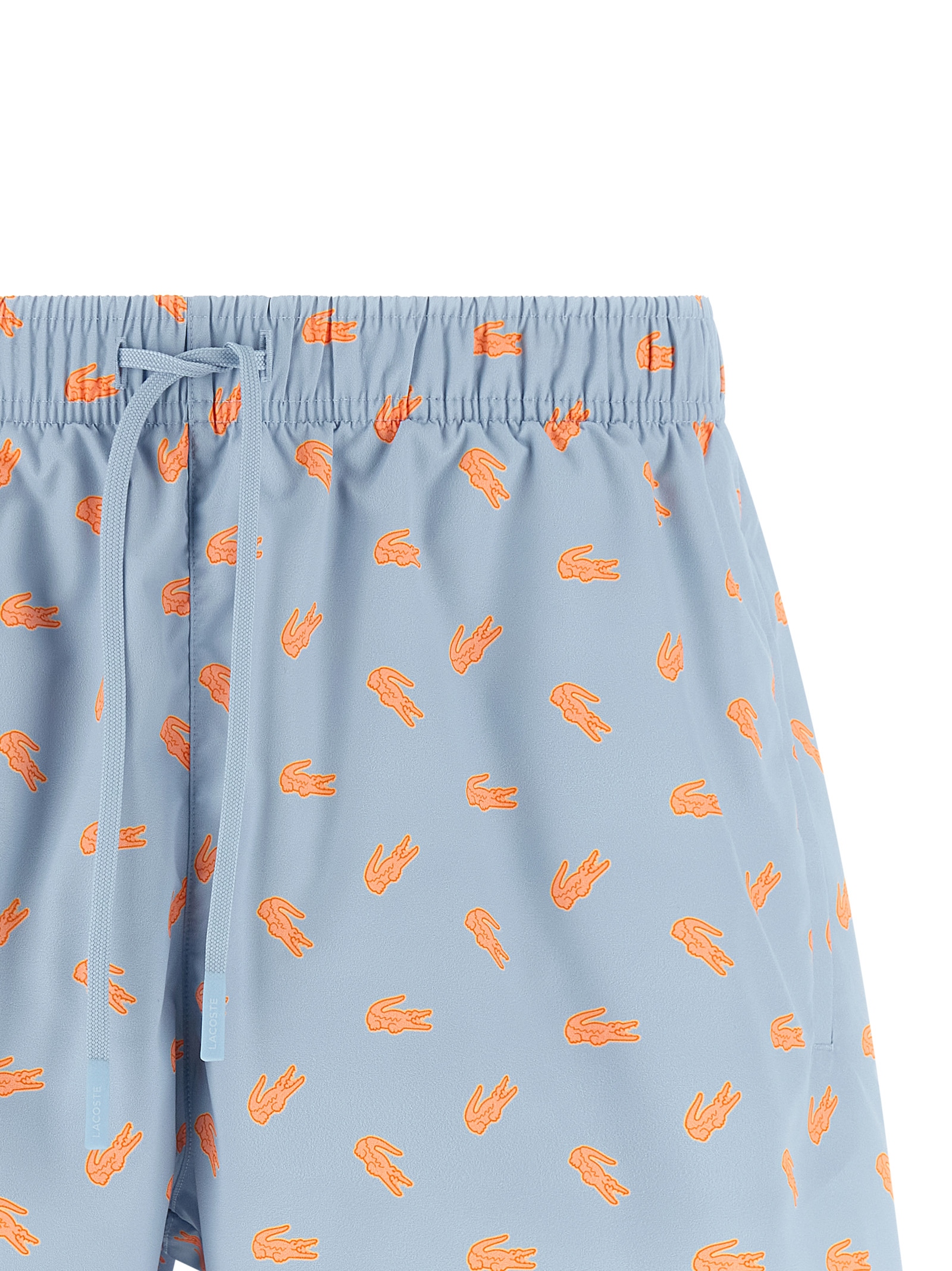 Lightweight quick-drying fabric swimsuit with all-over crocodile print, front logo patch, drawstring elastic waistband, pockets, inner mesh briefs. SUSTAINABLE: Product made from recycled polyester.