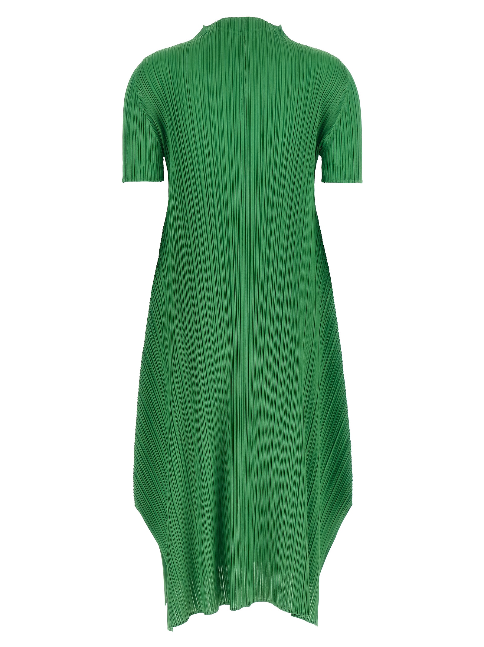 Monthly Colors: March' pleated midi dress with V-neck, hourglass silhouette with side splits, and short sleeves.