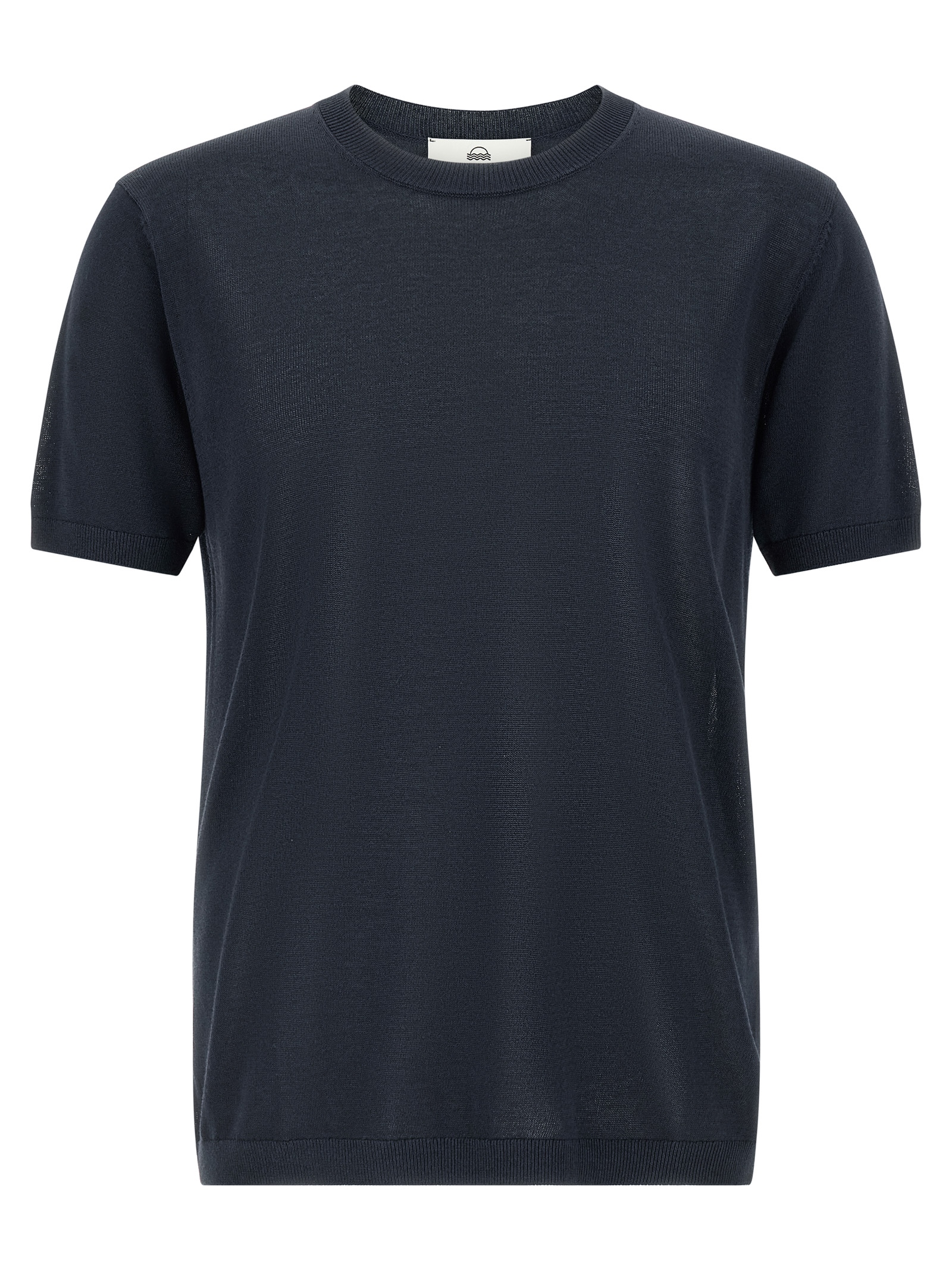 Viscose, cotton and wool blend sweater, crew neck, short cuffed sleeves.