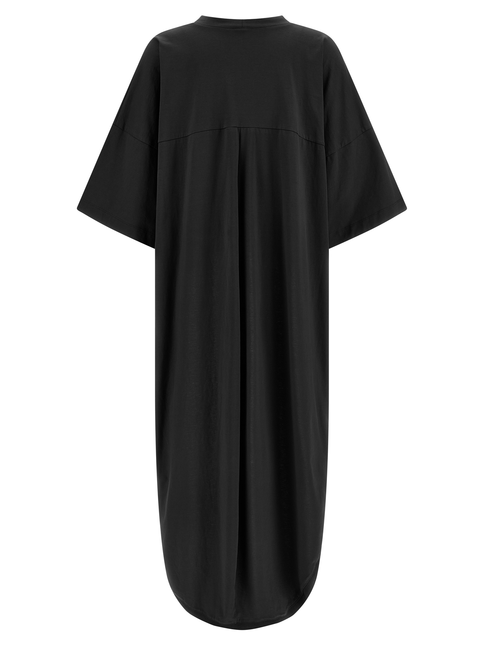 'Coda' cotton T-shirt with round neckline, wide short sleeves with dropped shoulders, asymmetrical hem with tone-on-tone grosgrain tape piping.