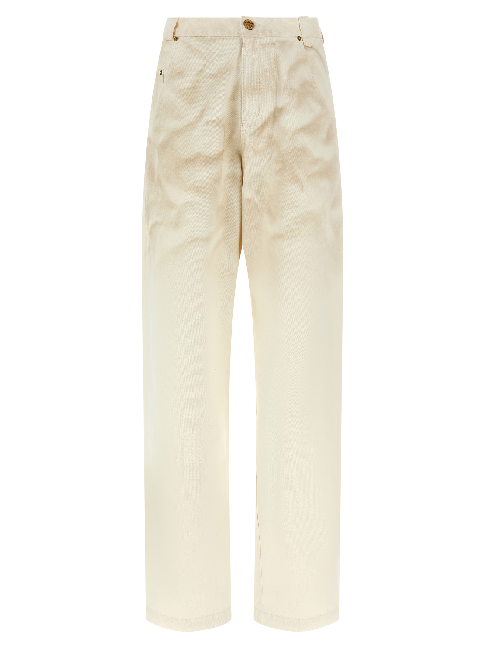 'Bad Boy' used-effect cotton denim jeans with high waist, tapered leg, front zip and button closure, five pockets, logo tag and back logo patch.