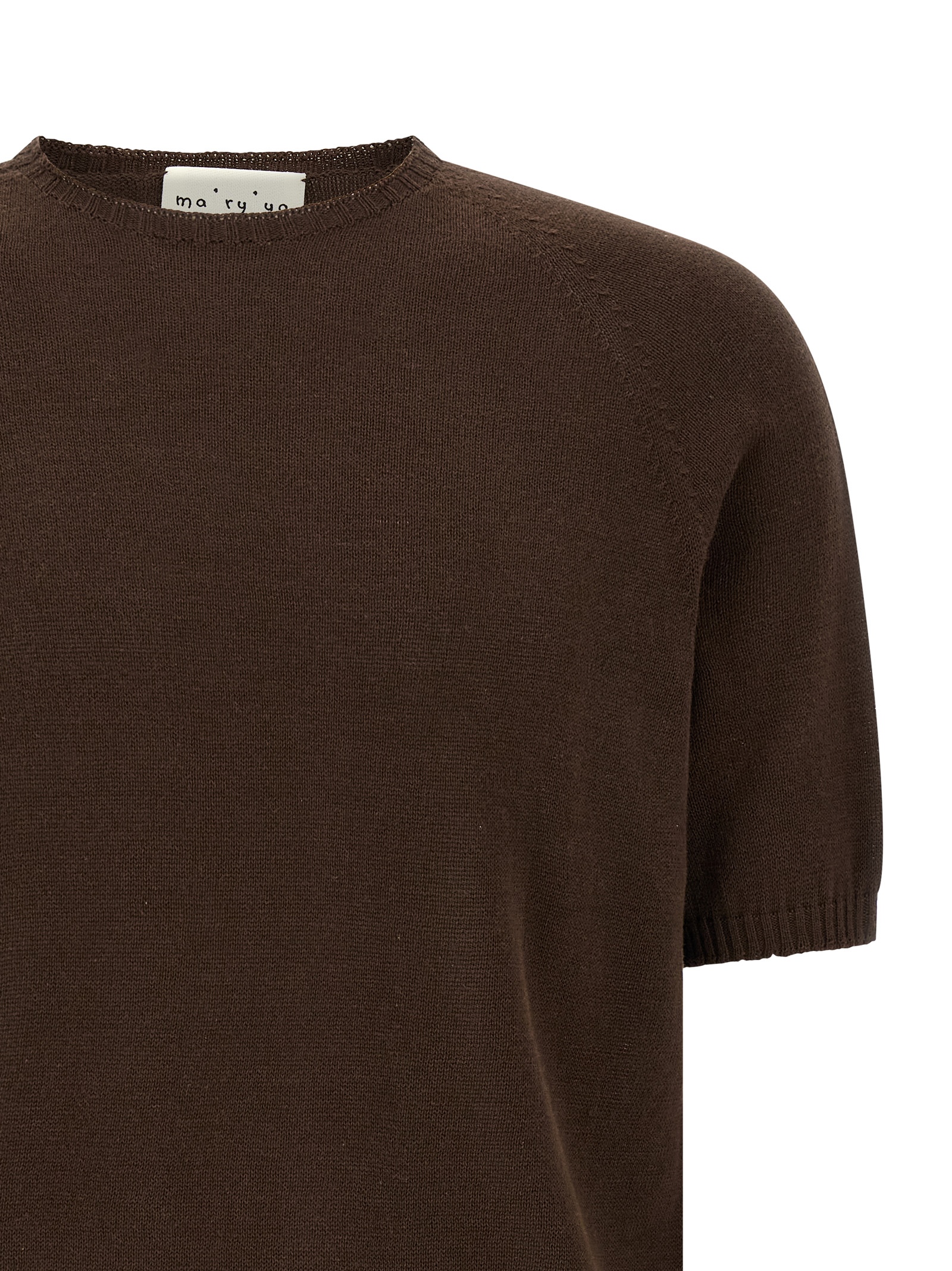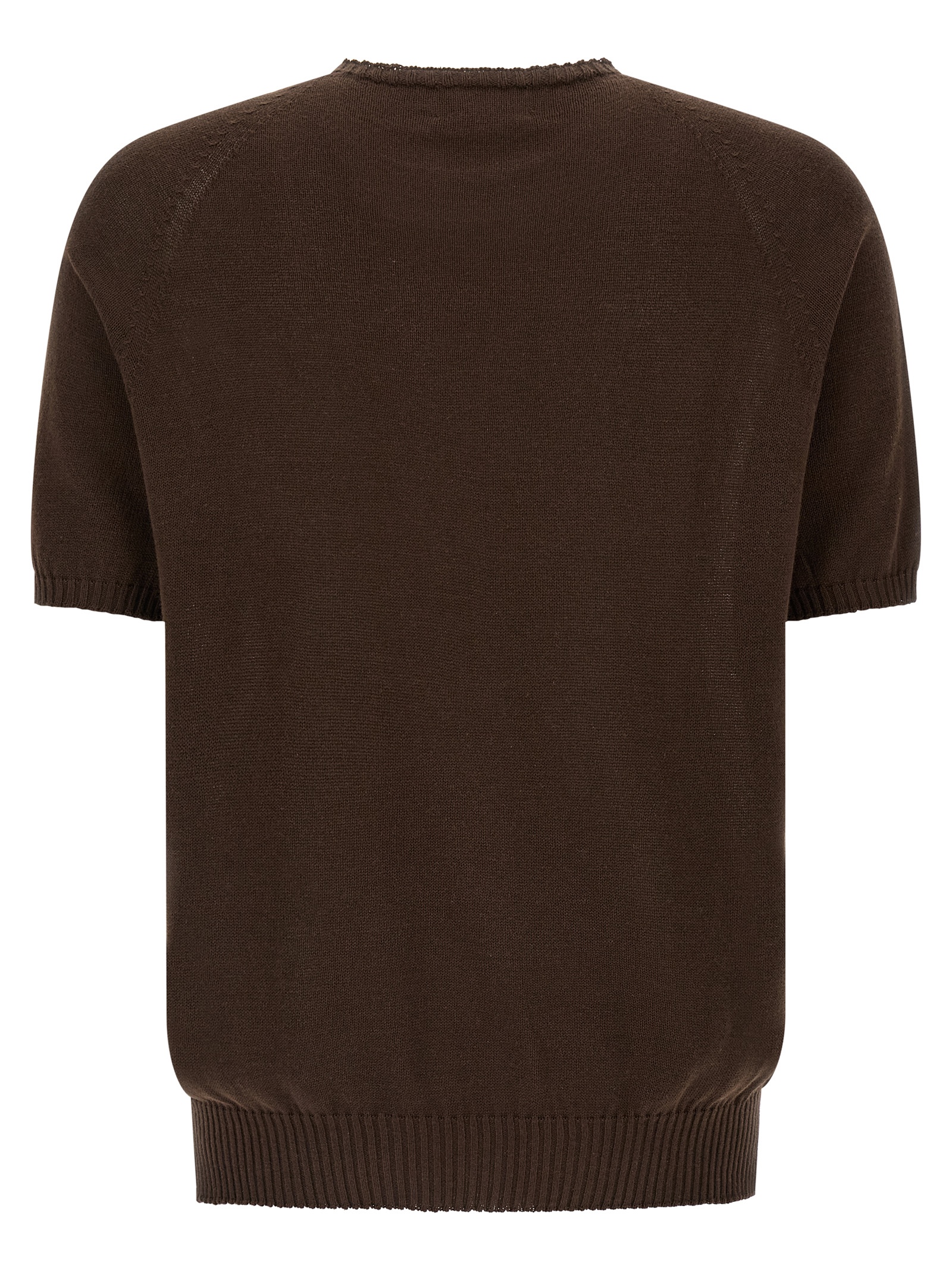 Cotton sweater with tone-on-tone ribbed details, crew neck, short raglan sleeves with cuffs, band and side slits on the hem.
