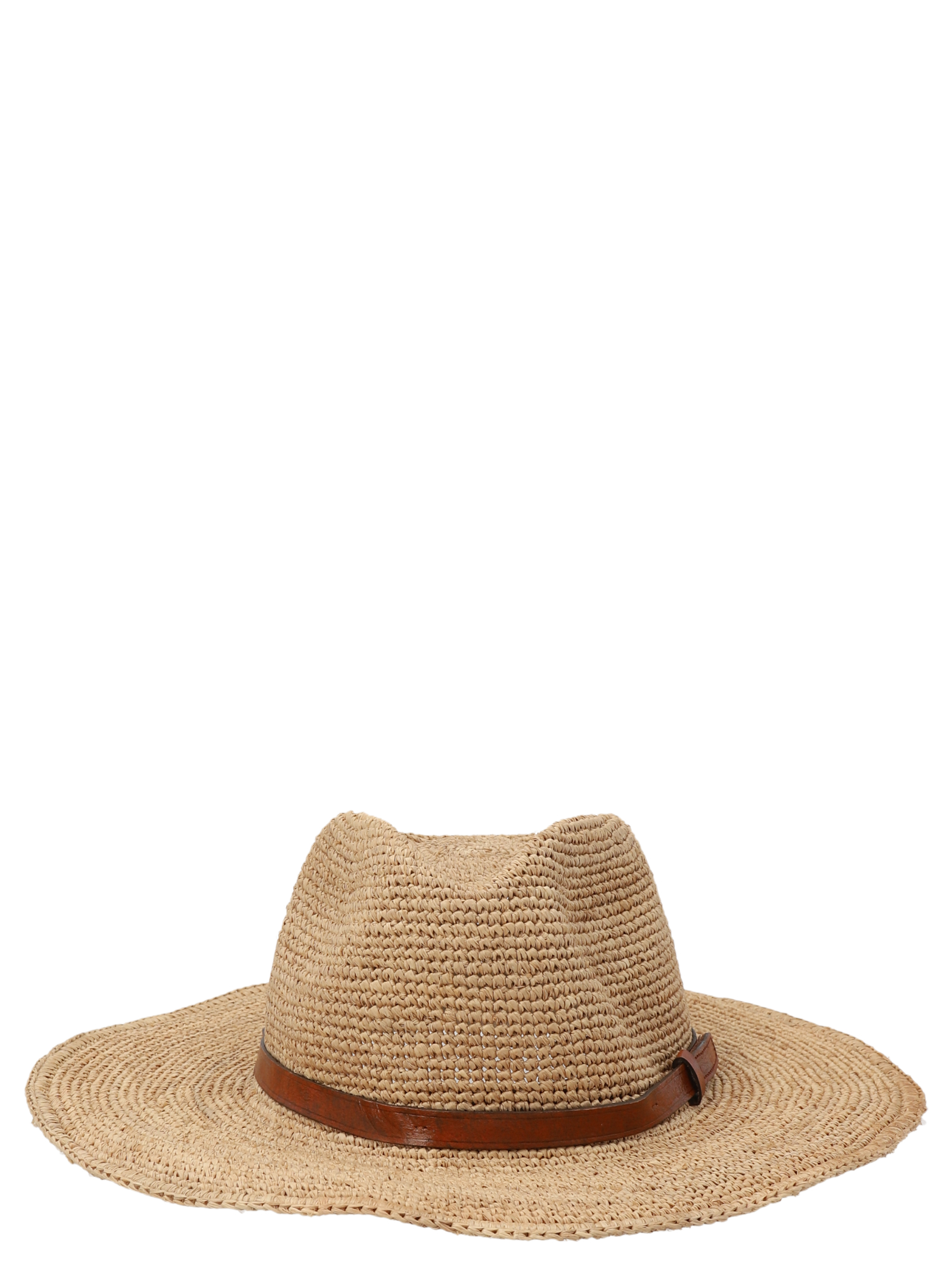 Шляпа «Энто» из натуральной рафии, связанная крючком, с широкими полями, ремешком из кожи зебу растительного дубления, регулируемым запатентованной системой застежек-липучек IBELIV, складная. Изделие ручной работы, любые несовершенства следует рассматривать как отличительные признаки уникальности.Характеристики товара