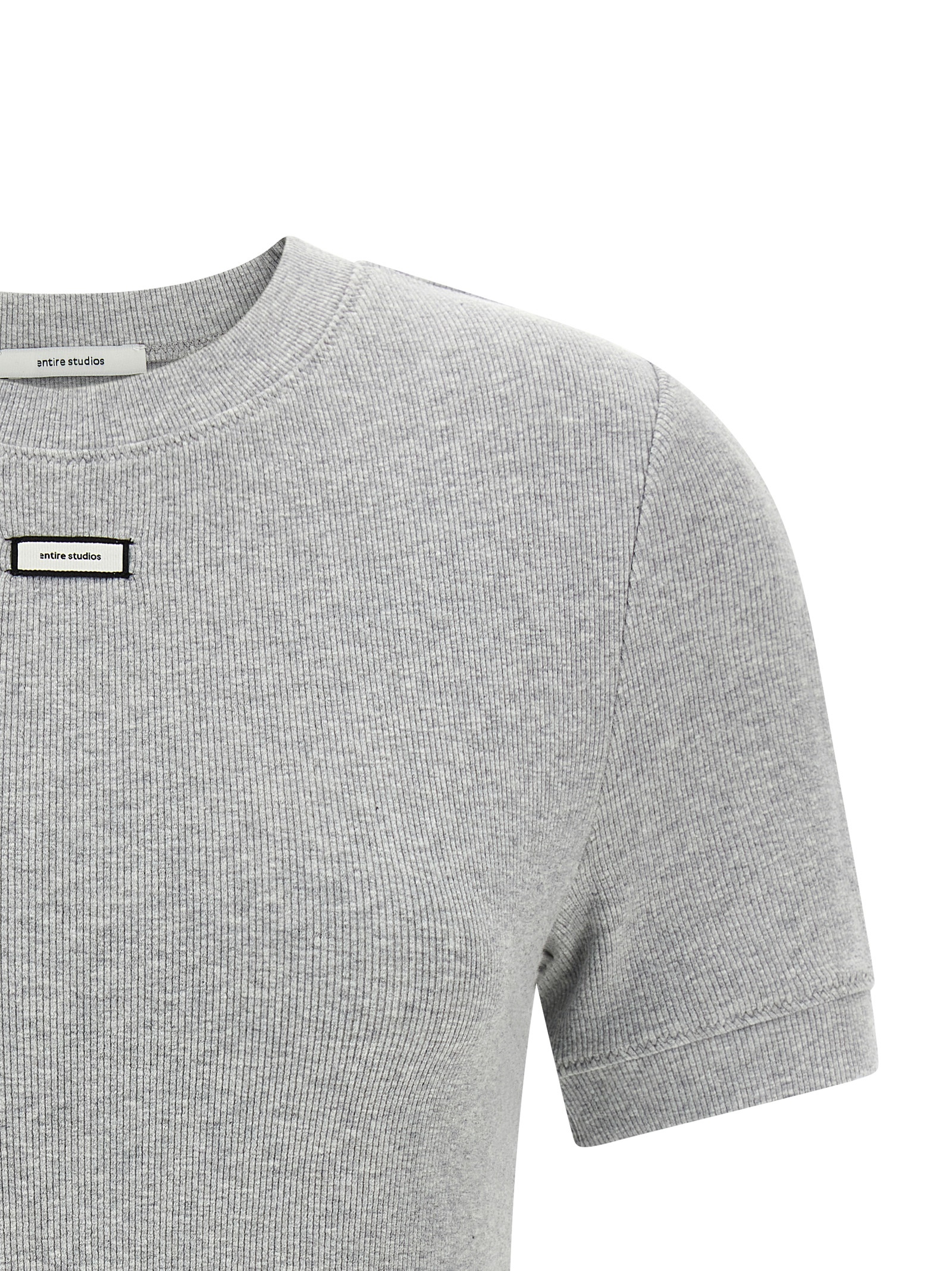 Эластичная хлопковая футболка в рубчик Lounge с нашивкой с логотипом спереди, круглым вырезом и короткими рукавами с манжетами.