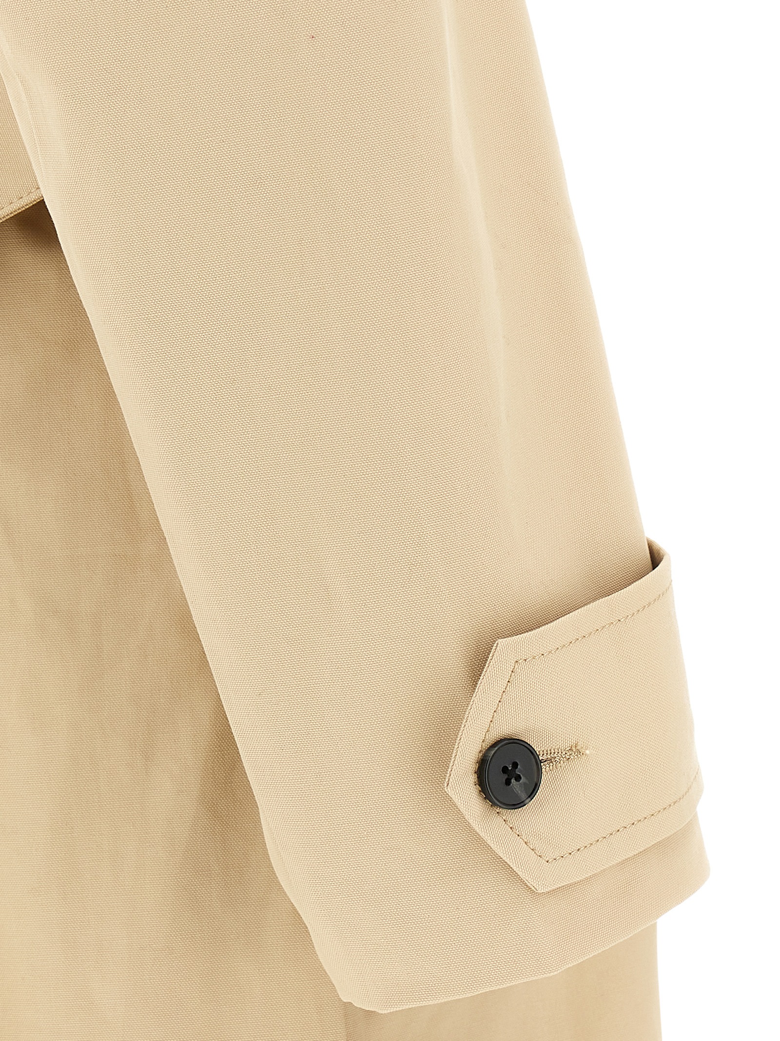 'Classic' cotton canvas trench coat with front asymmetrical button closure, pockets, long sleeves, cape and back split, lining, adjustable and removable belt.
