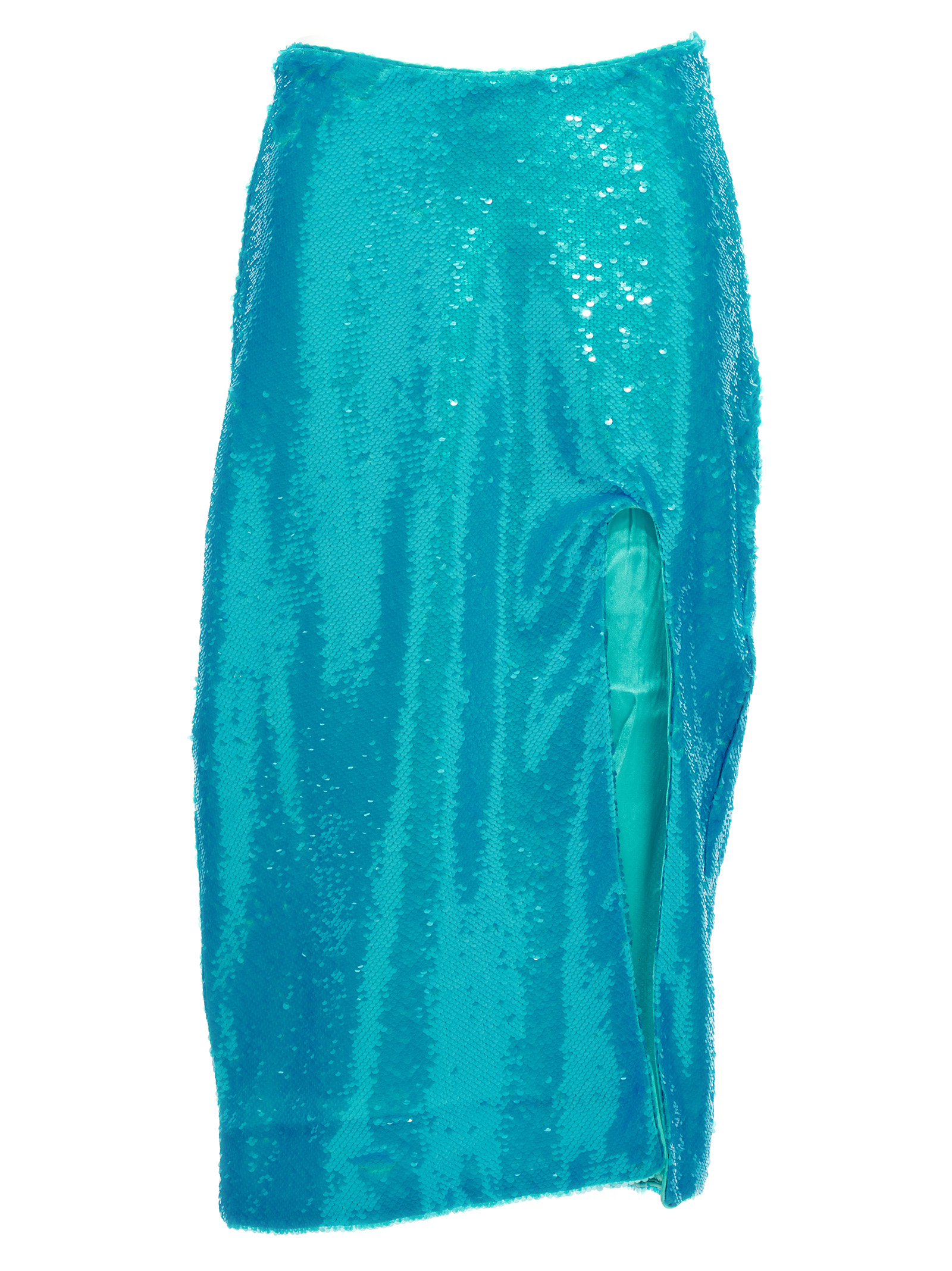 Fabric midi skirt withll-over sequin appliqués, front split and a side zip closure. SUSTAINABLE: This product is made in recycled polyester.ester.