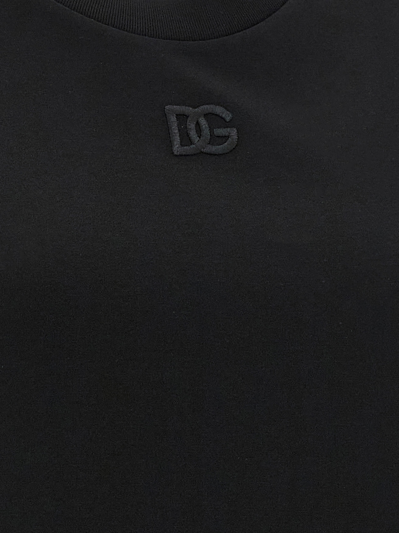 Cotton jersey T-shirt with tone-on-tone logo embroidery on the front, crew neck, sleeveless, triangle silk scarf with 'Bouquet' print fixed on the neckline with buttons and removable.