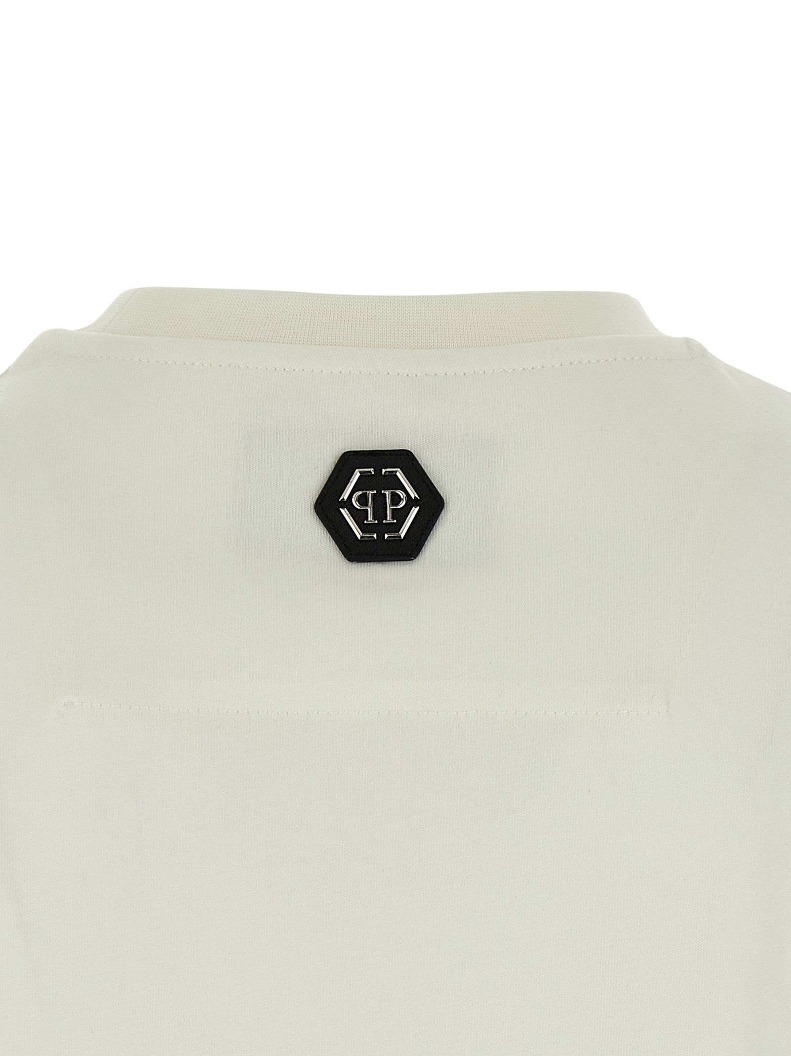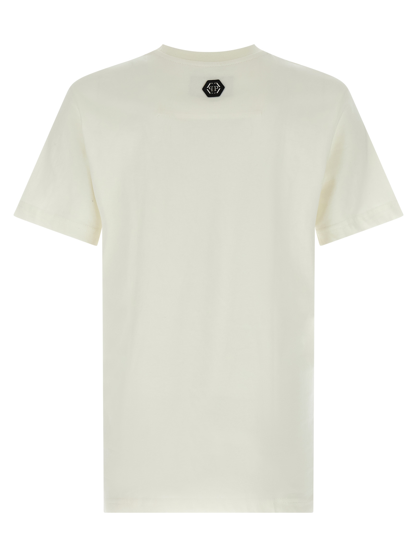'Stripes' cotton jersey T-shirt with front print, leather patch with back metal logo, crew neck, short sleeves.