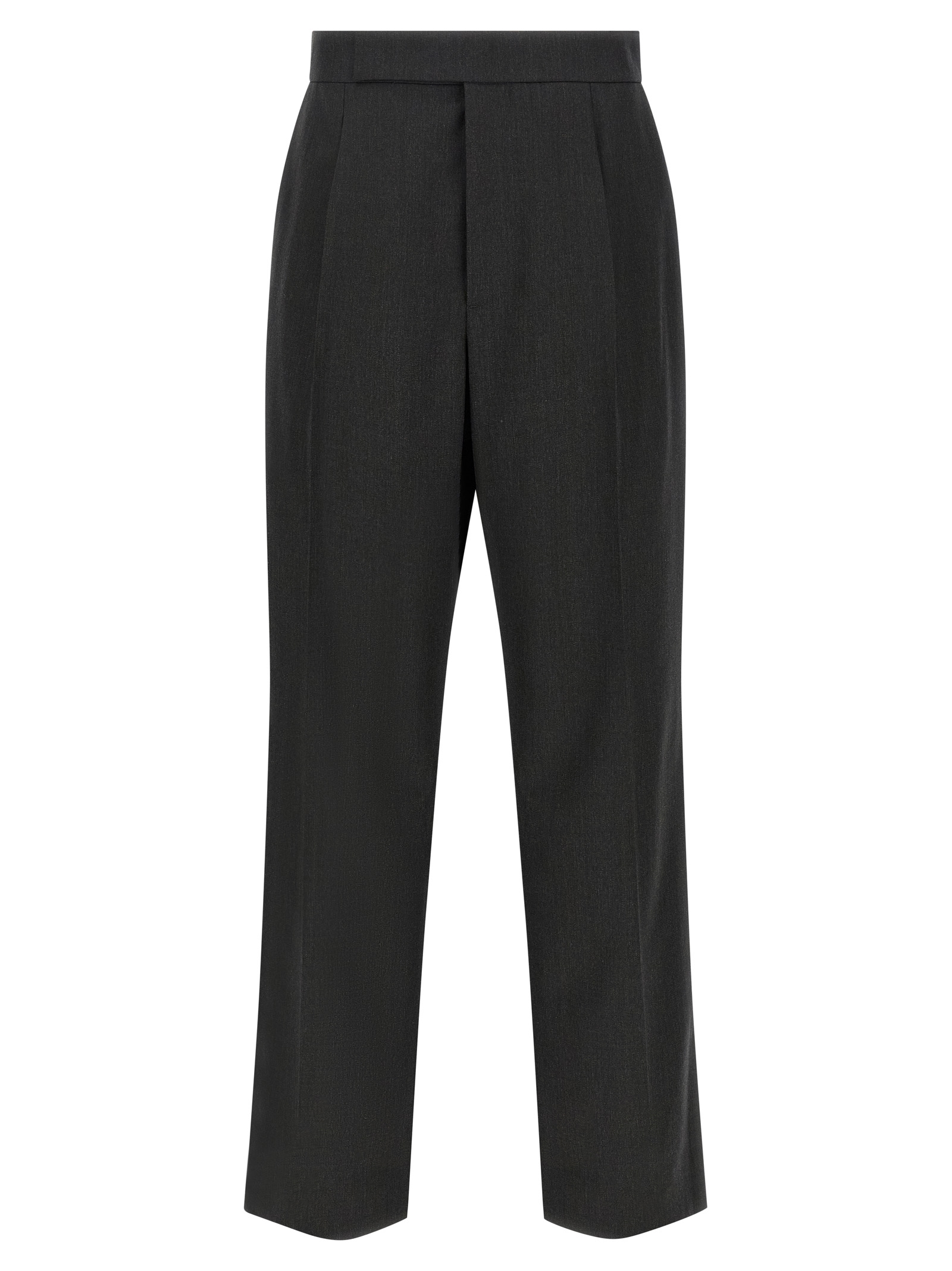 Шерстяные брюки в елочку, со складками и растянутыми складками, прямого кроя, застежка на молнию, крючок и пуговицу спереди, карманы.