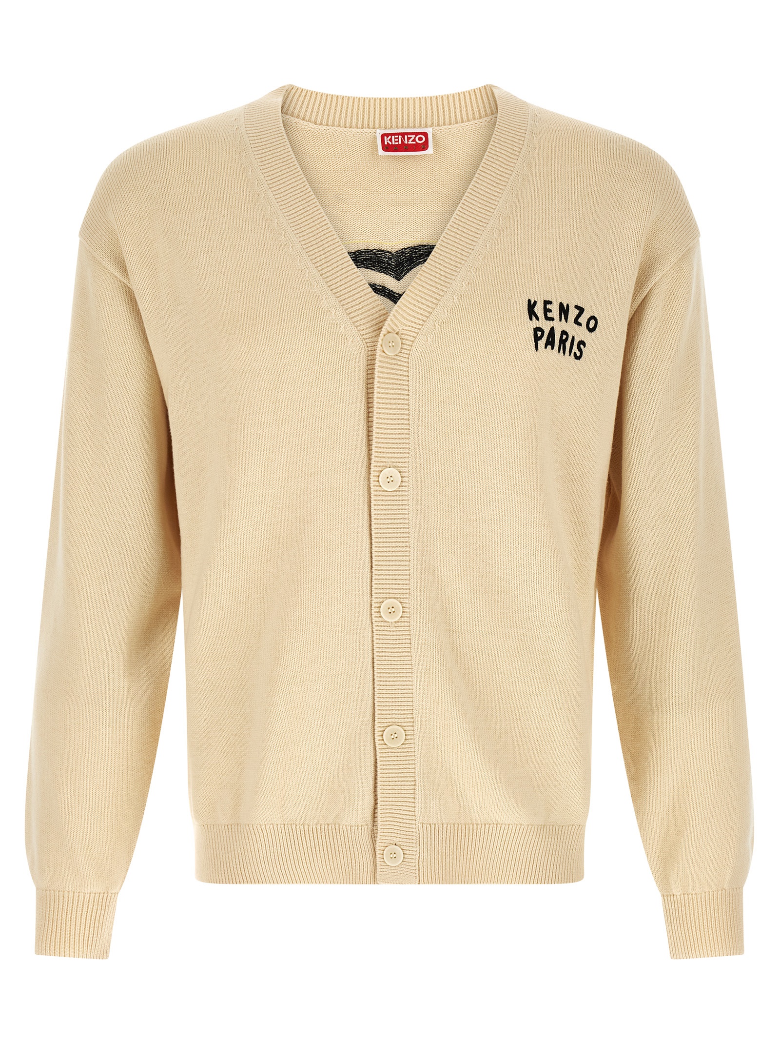 Кардиган из смеси хлопка и шерсти с вышивкой «KENZO Boke Heart» спереди и сзади, V-образный вырез, застежка на пуговицы спереди, длинные рукава с манжетами.