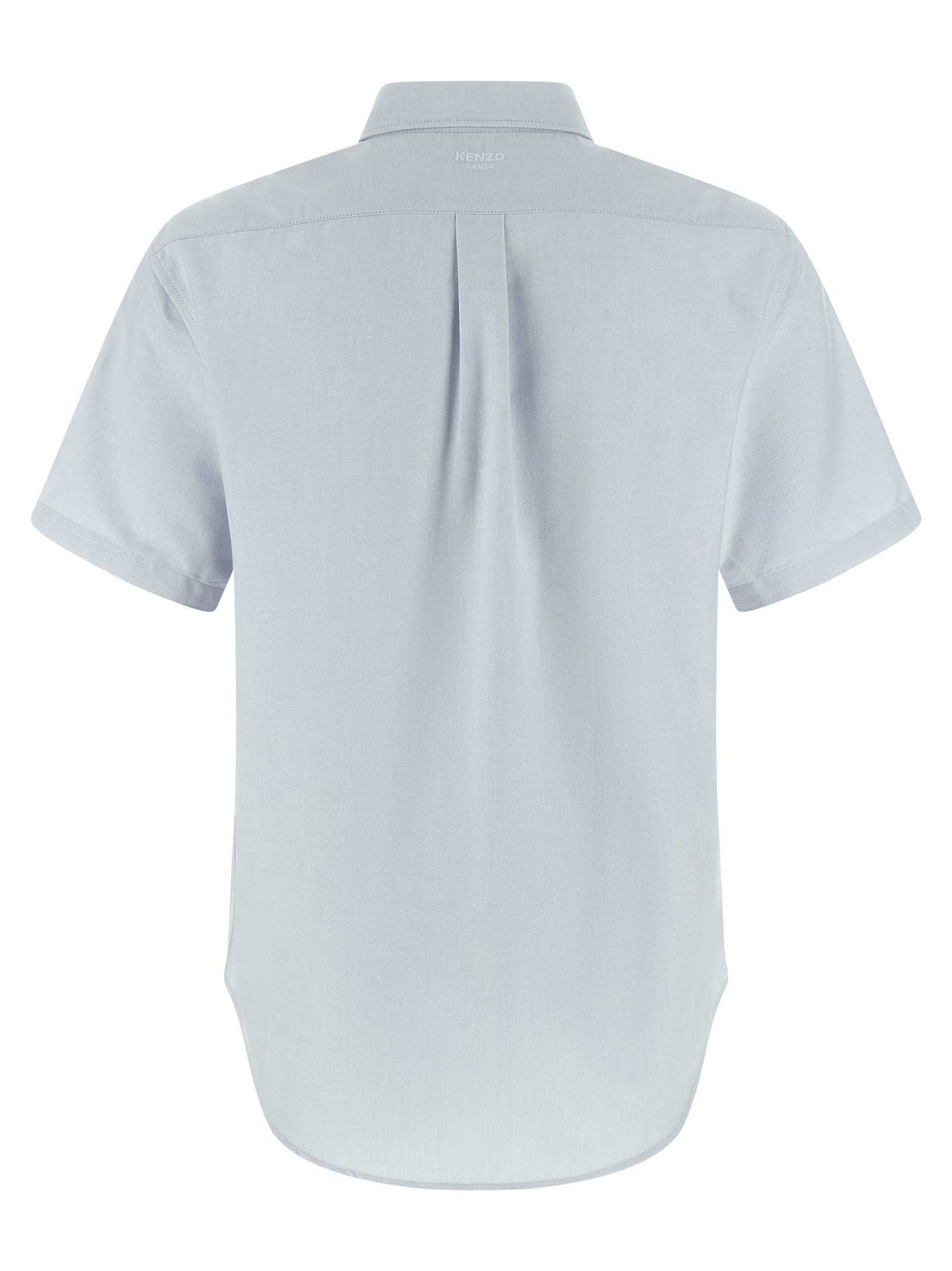 Oxford cotton shirt with button-down style, 'Boke Flower Crest' patch and front button closure, short sleeves, rounded and asymmetrical hem.