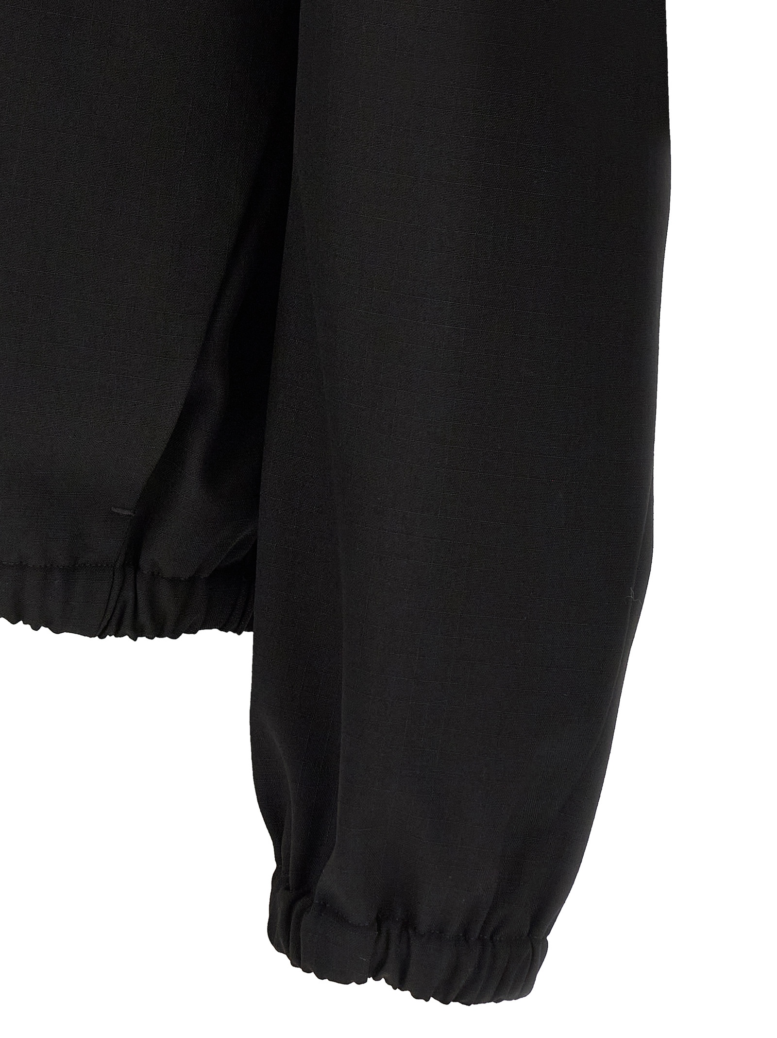 Virgin wool ripstop sweatshirt with high neck, half-zip, long sleeves with elastic cuffs and dropped shoulder, pockets, elastic hem, tone-on-tone leather patch with embossed logo on the back.