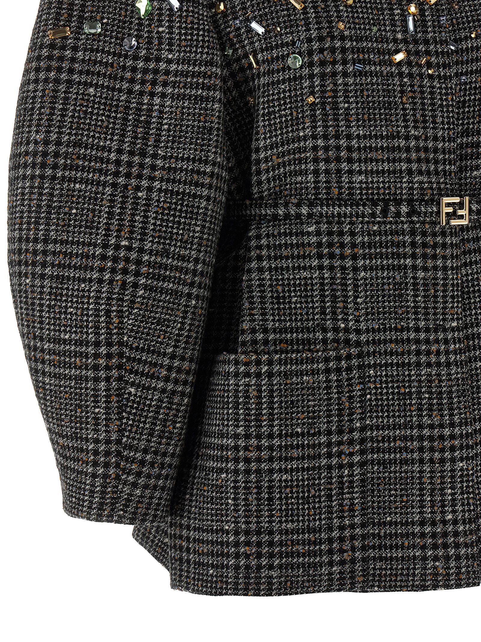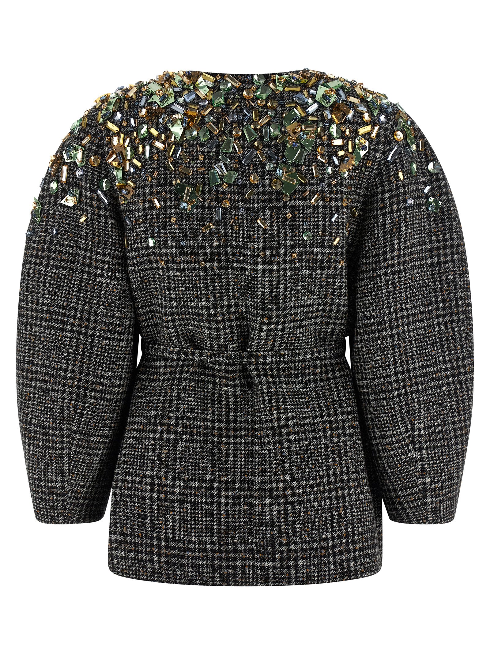 Check wool tweed jacket, crystal embroidery at the top, front button closure, removable and adjustable waist belt with logo buckle.Характеристики товара
