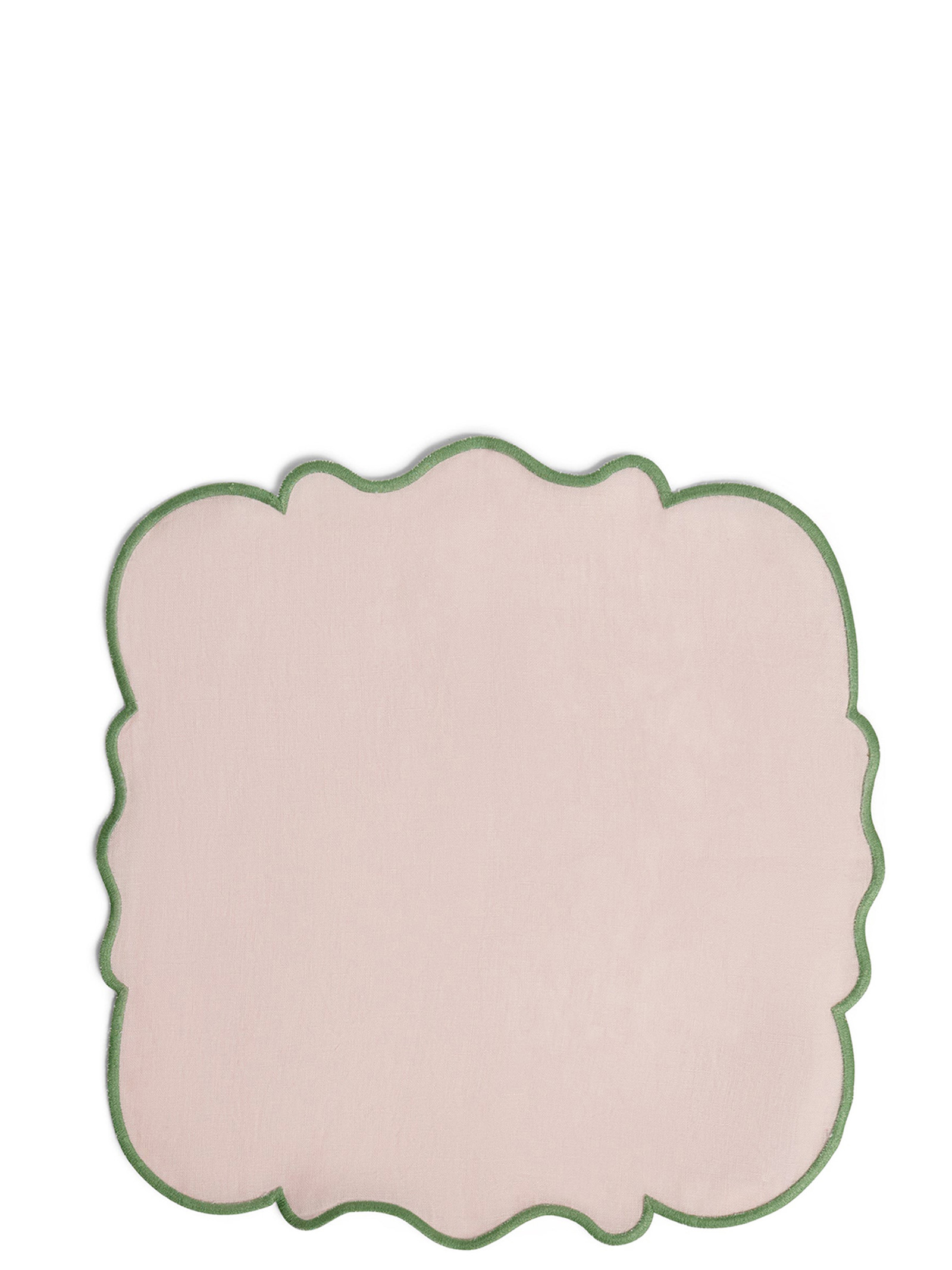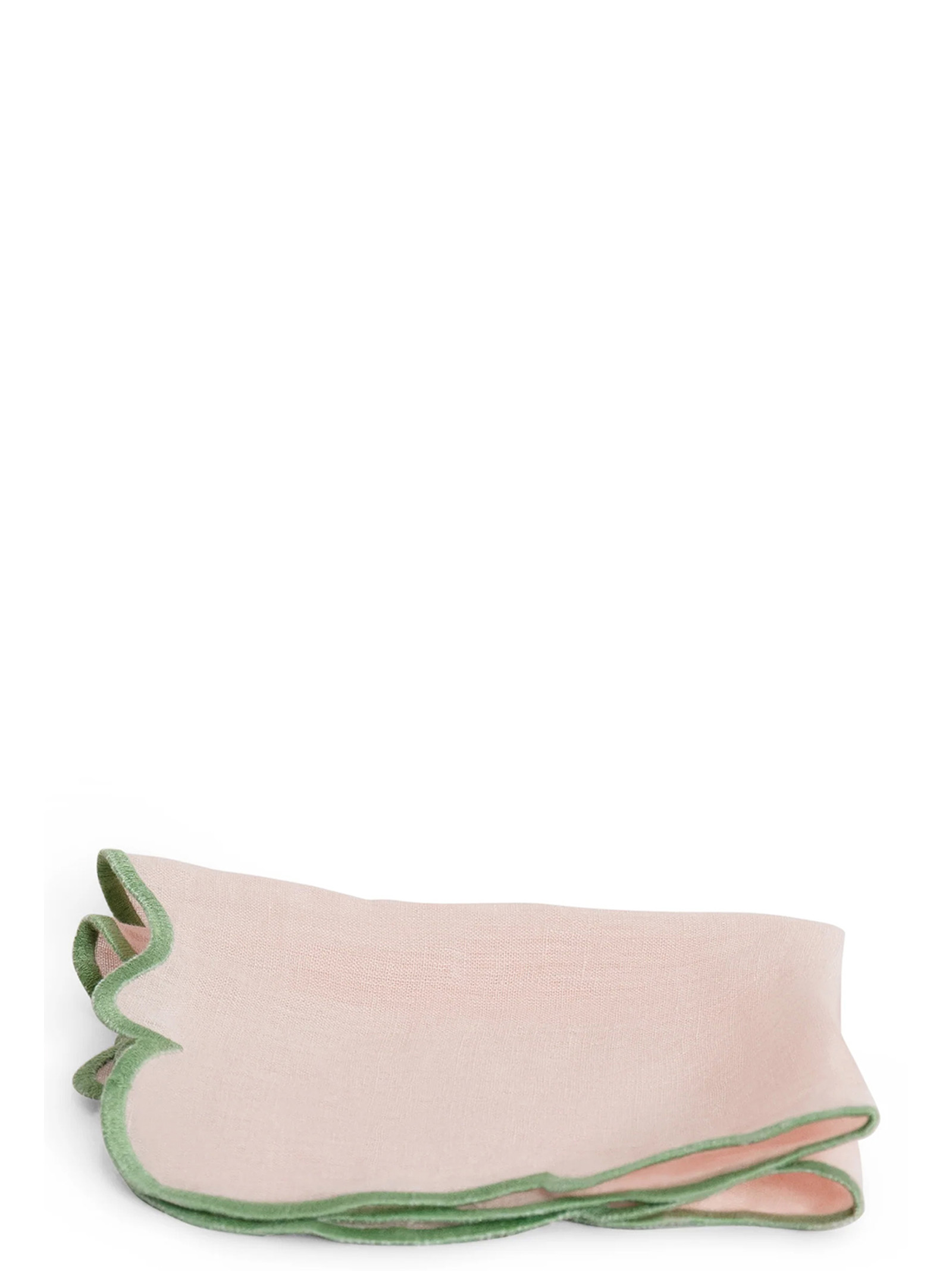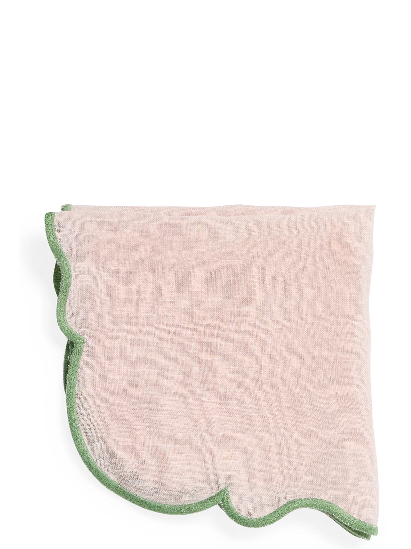 Set of 2 linen napkins with contrasting scalloped edge.