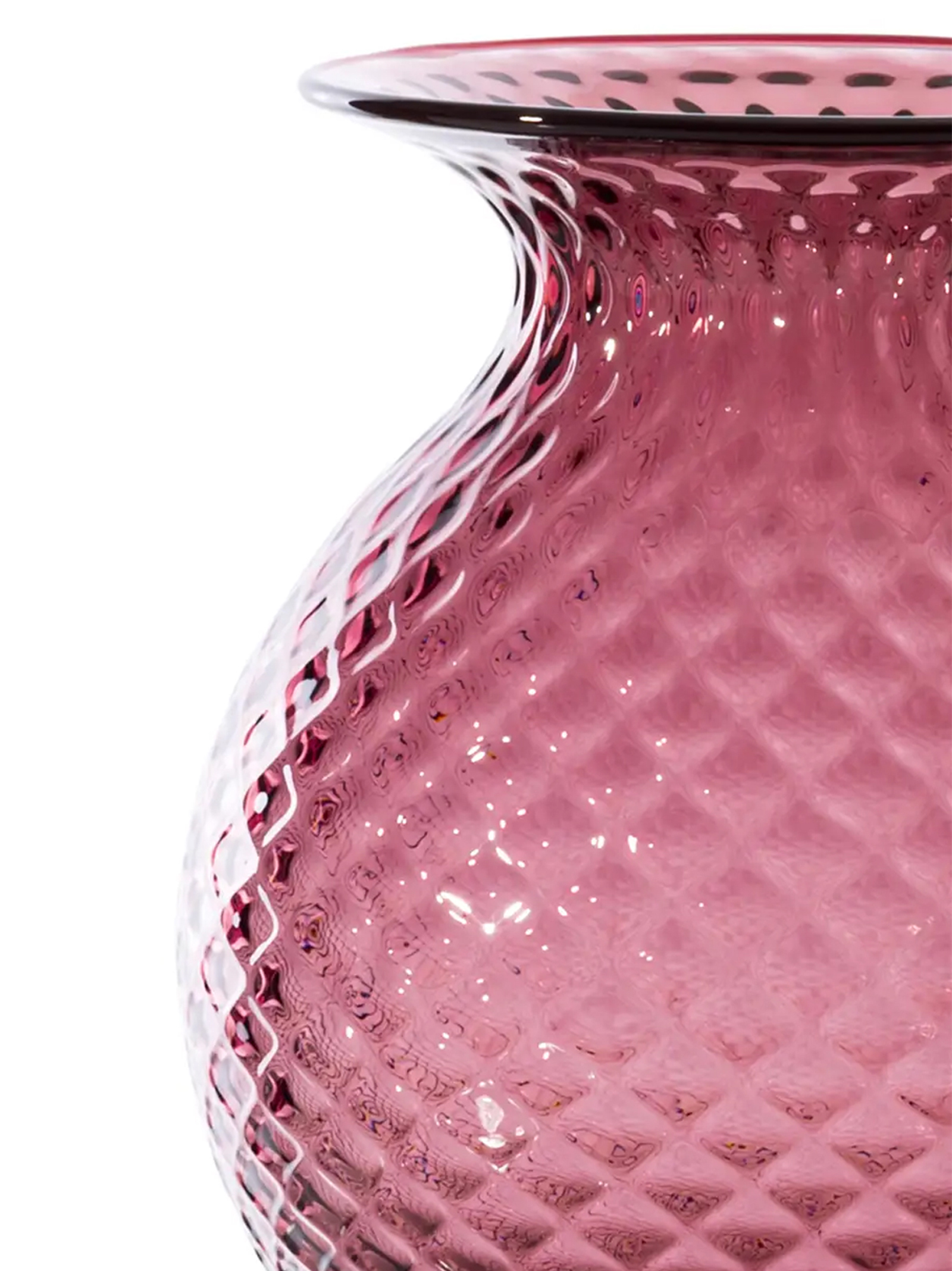The Balloton collection is expanded and enriched with a version able to accommodate larger floral compositions. The Balloton Fiori are made through a unique artisanal process that recreates the matelassé effect using glass. These vases are handmade, blown and finished with skill, while a colored thread is applied hot, embracing the decorative motif and leaving room for wonder.
