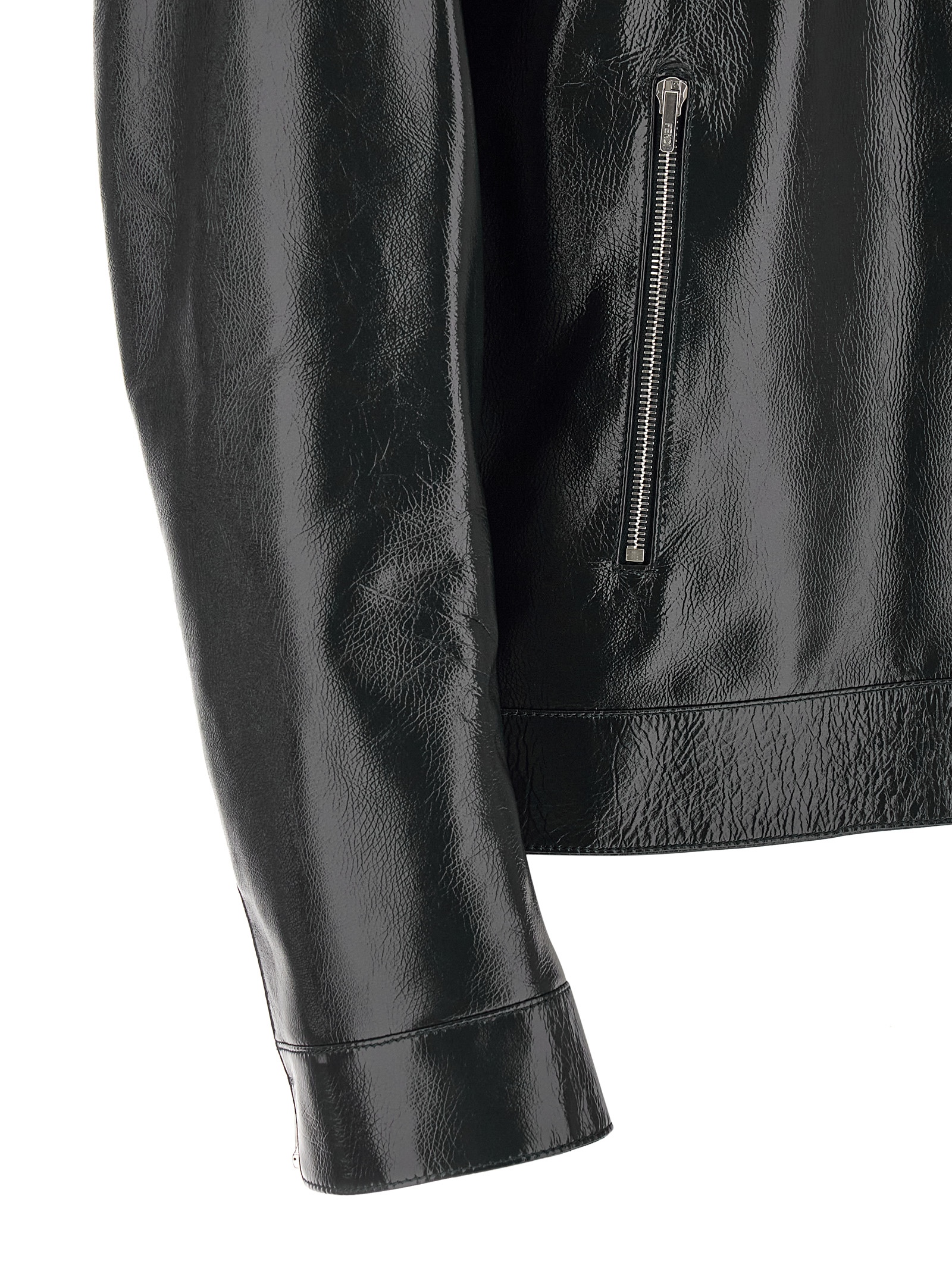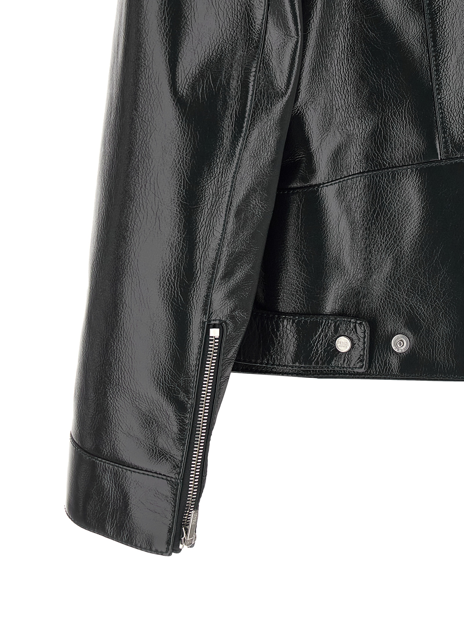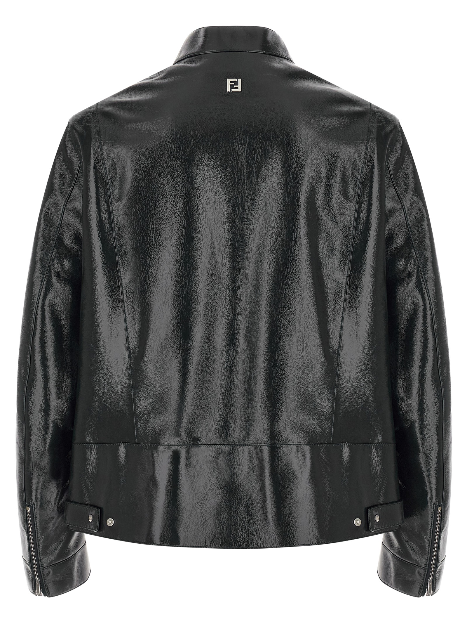 Leather blouson treated with a lacquered finish, biker model, rear metal FF detail, price list collar with snap button, front zip closure, pockets, long sleeves with zip on the cuffs, adjustable wings at the back waist, micro FF fabric lining in tone.