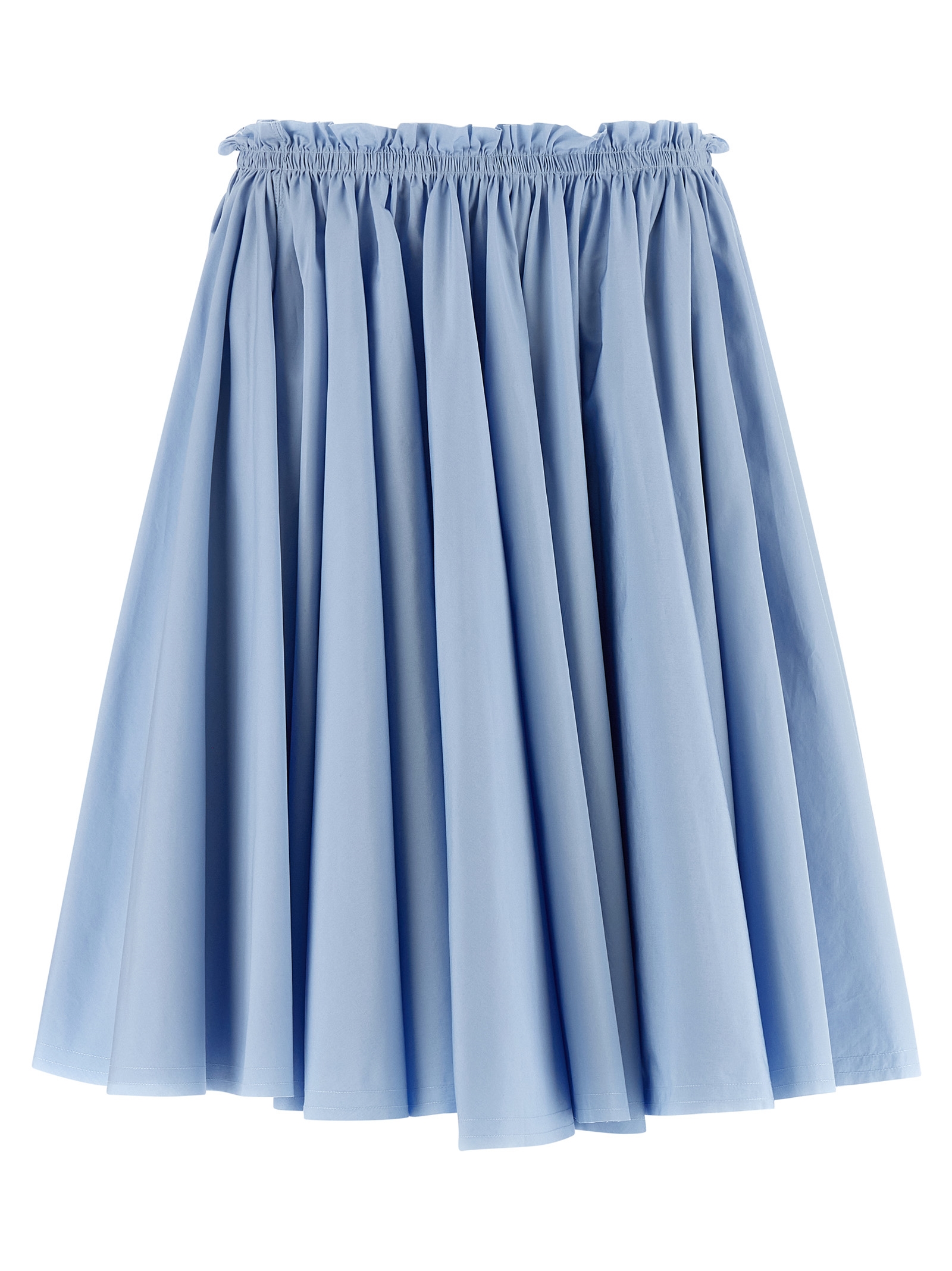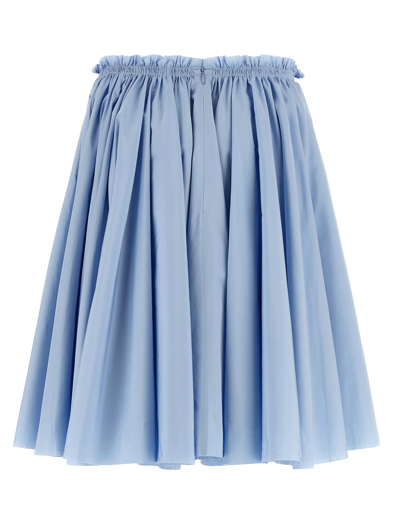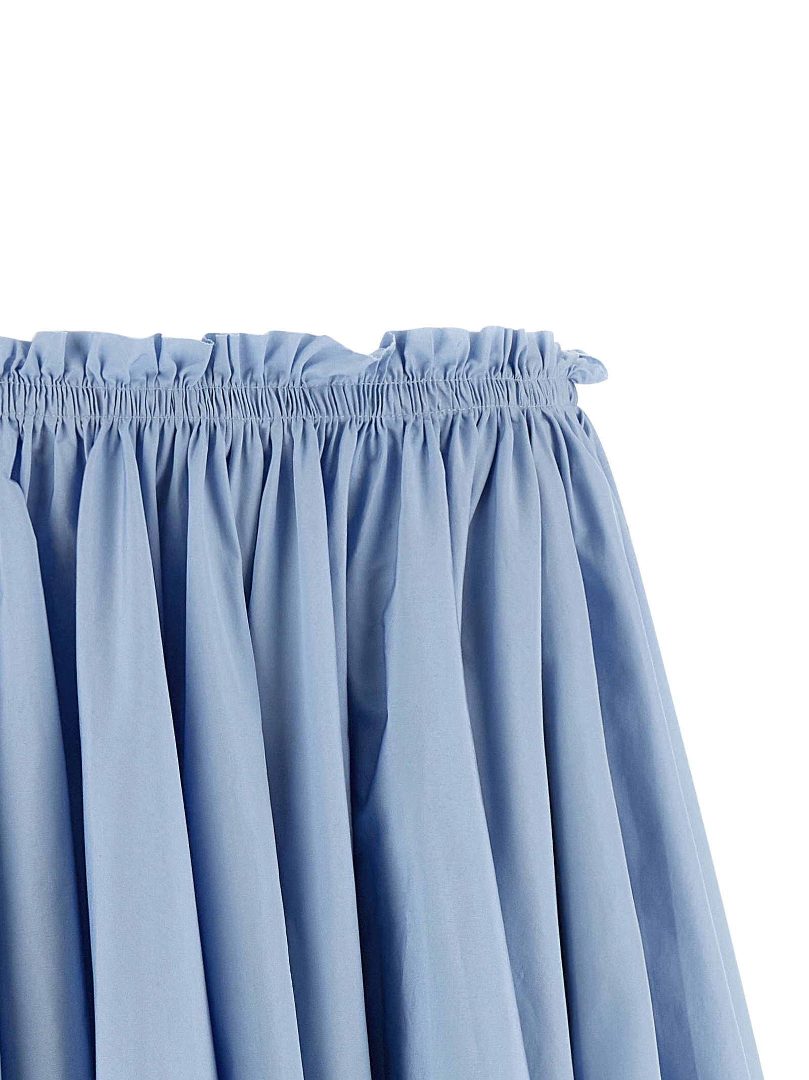 Midi skirt in cotton poplin with wheel style with curling at the waist, raw cut, invisible zip back closure, side pockets.