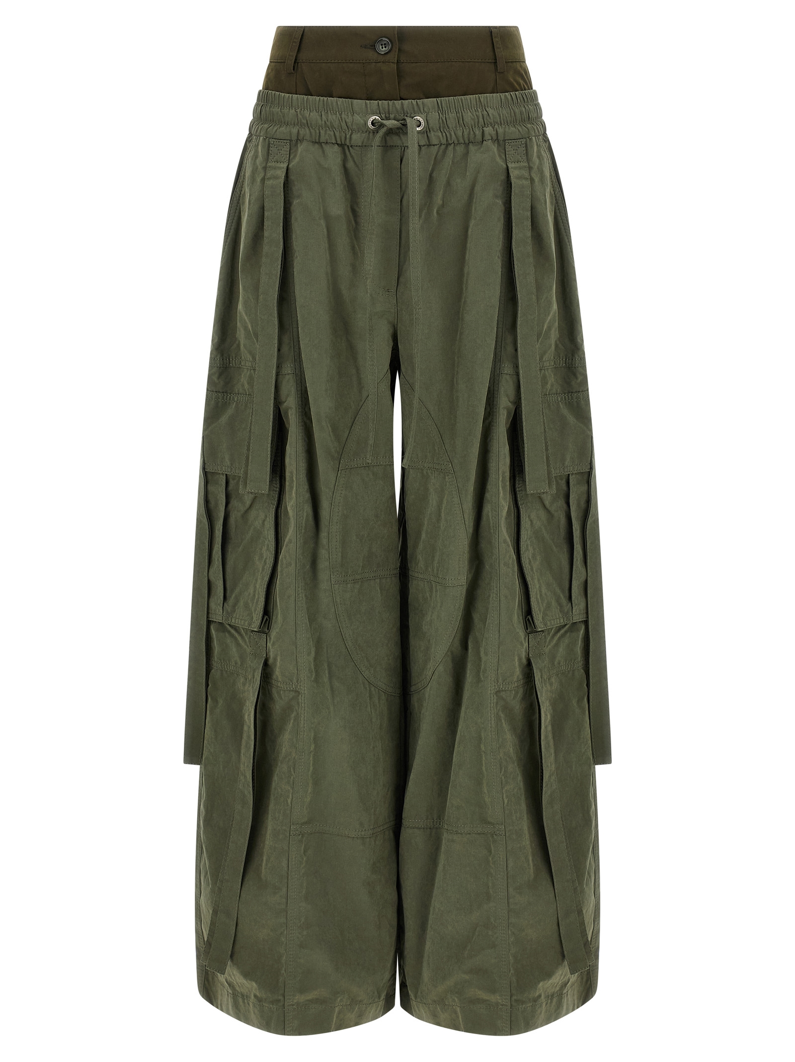 Waxed faille pants with washed and wrinkled effect, cargo model, Low waist with heavy cotton double layer detail with zip and front button closure, zip flap, adjustable drawstring elastic waistband, pockets, flared wide leg, tonal tapes..Характеристики товара