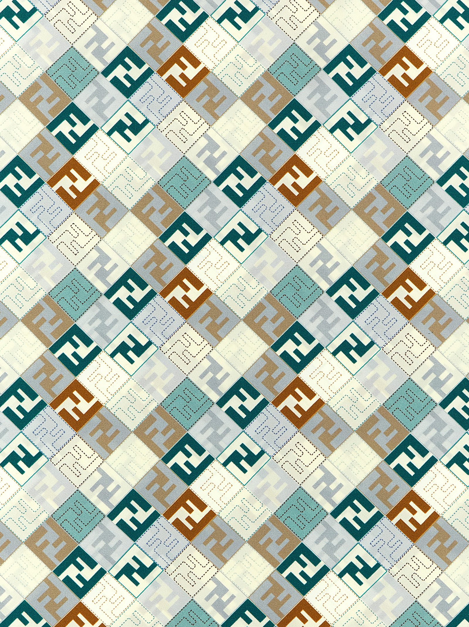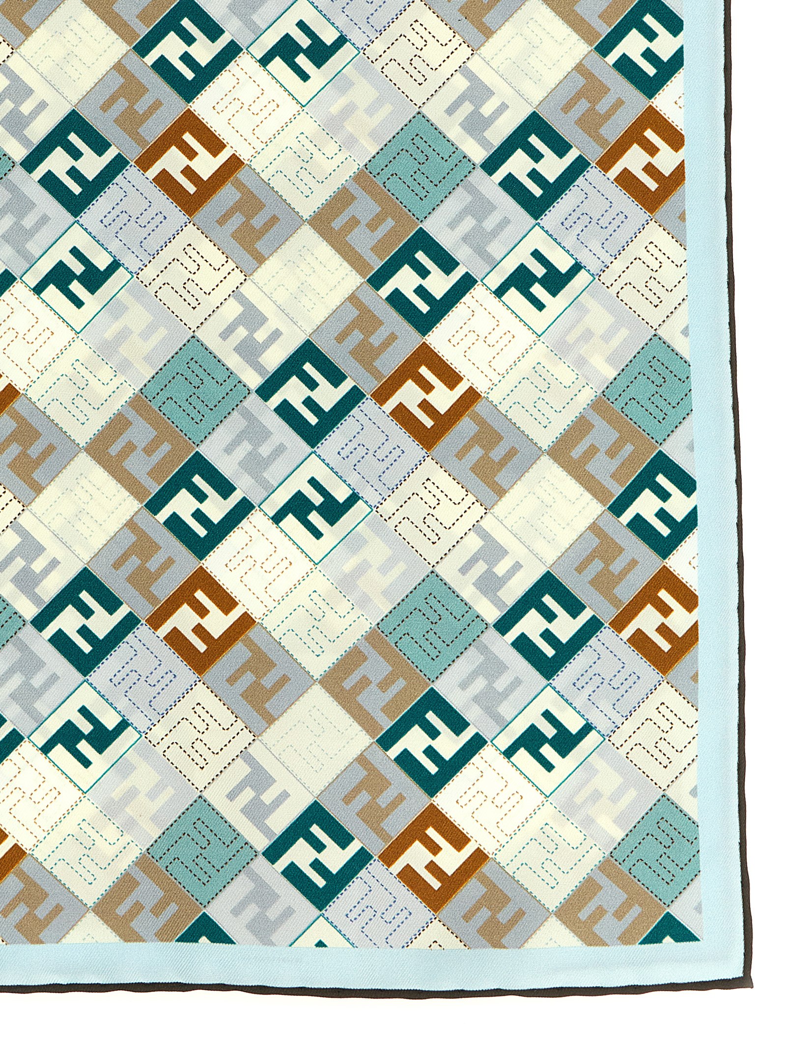 'Fendi' scarf in silk twill with patterned print of geometric shapes and FF micro logos.