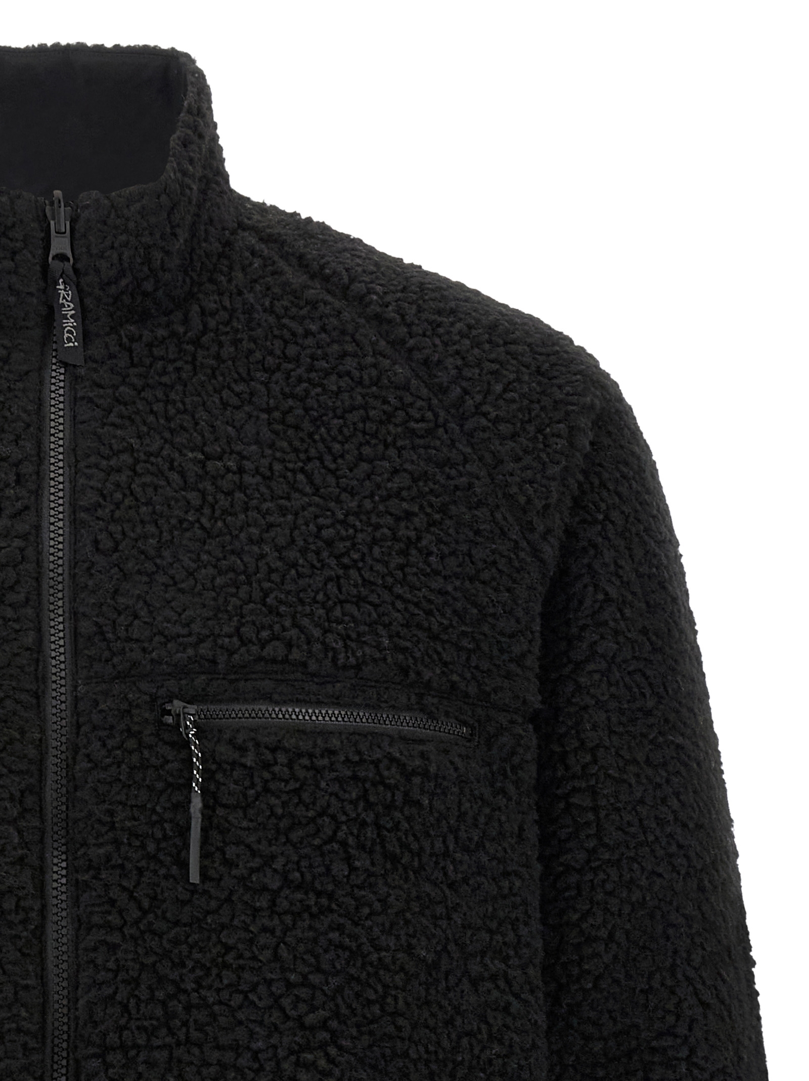 'Reversible Sherpa' jacket in wire-haired Sherpa fleece and high intensity ripstop nylon, reversible design, logo embroidery and front zip closure, high neck, pockets, long cuffed sleeves.