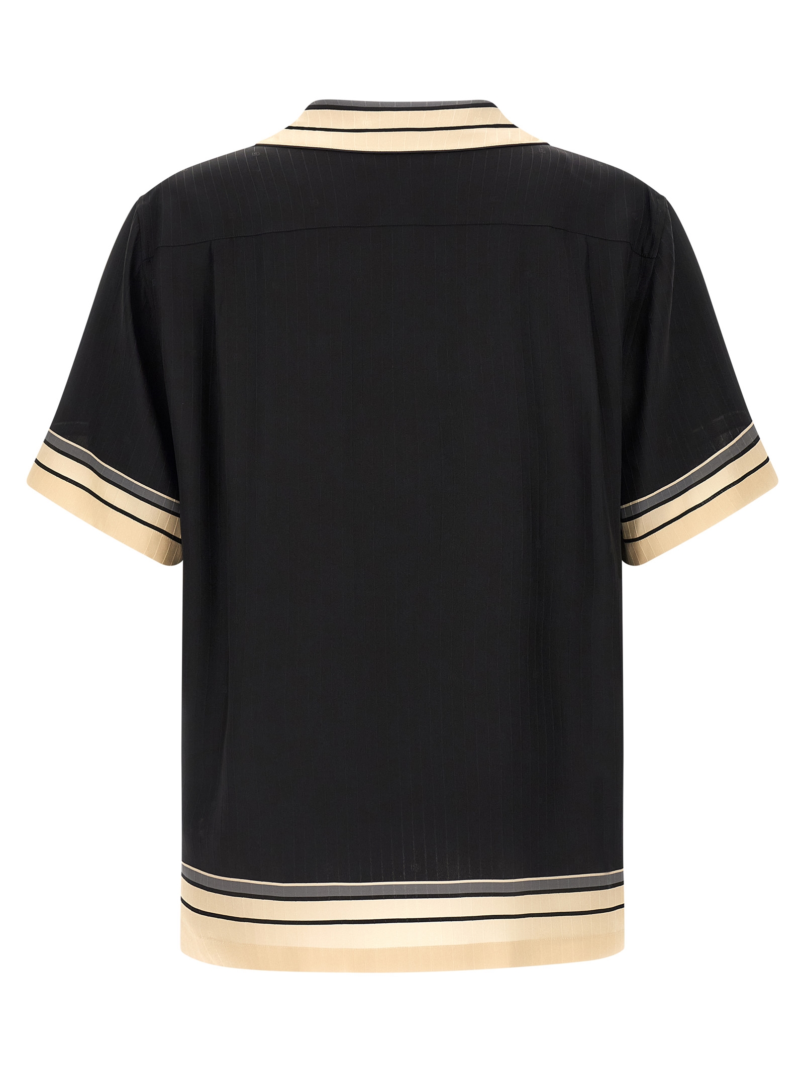 'Hawaii' silk shirt with logo and stripe print, 'Vanity' collar, breast pocket, front button closure, short sleeves, side slits. The differences in print placement you might find on this product is a characteristic of Dolce&Gabbana's Handmade products. A peculiarity that makes each garment or accessory unique and exclusive.