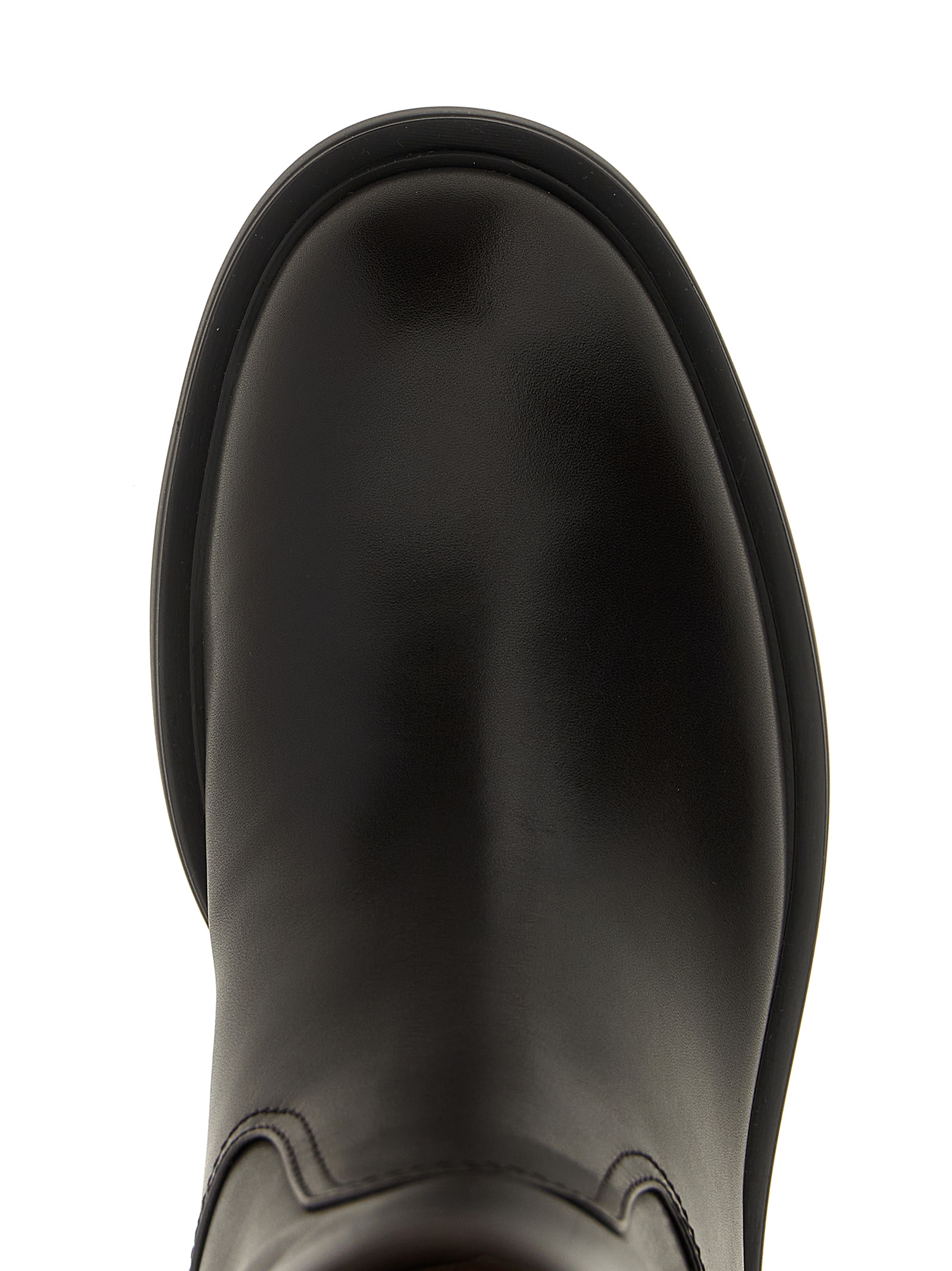 Кожаные ботинки Ascott, модель без застежек, с закругленным носком, металлическим логотипом «Ribbon» сзади, резиновой подошвой.