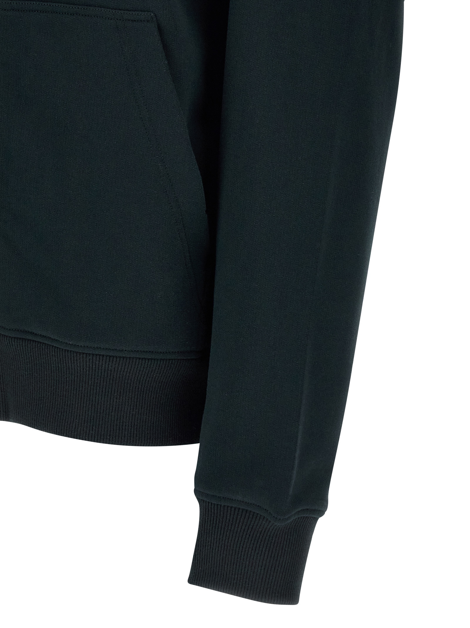 Hoodie in brushed cotton jersey, contrasting logo patch and front zip closure, pockets, long sleeves with cuffs and dropped shoulders, and headband.