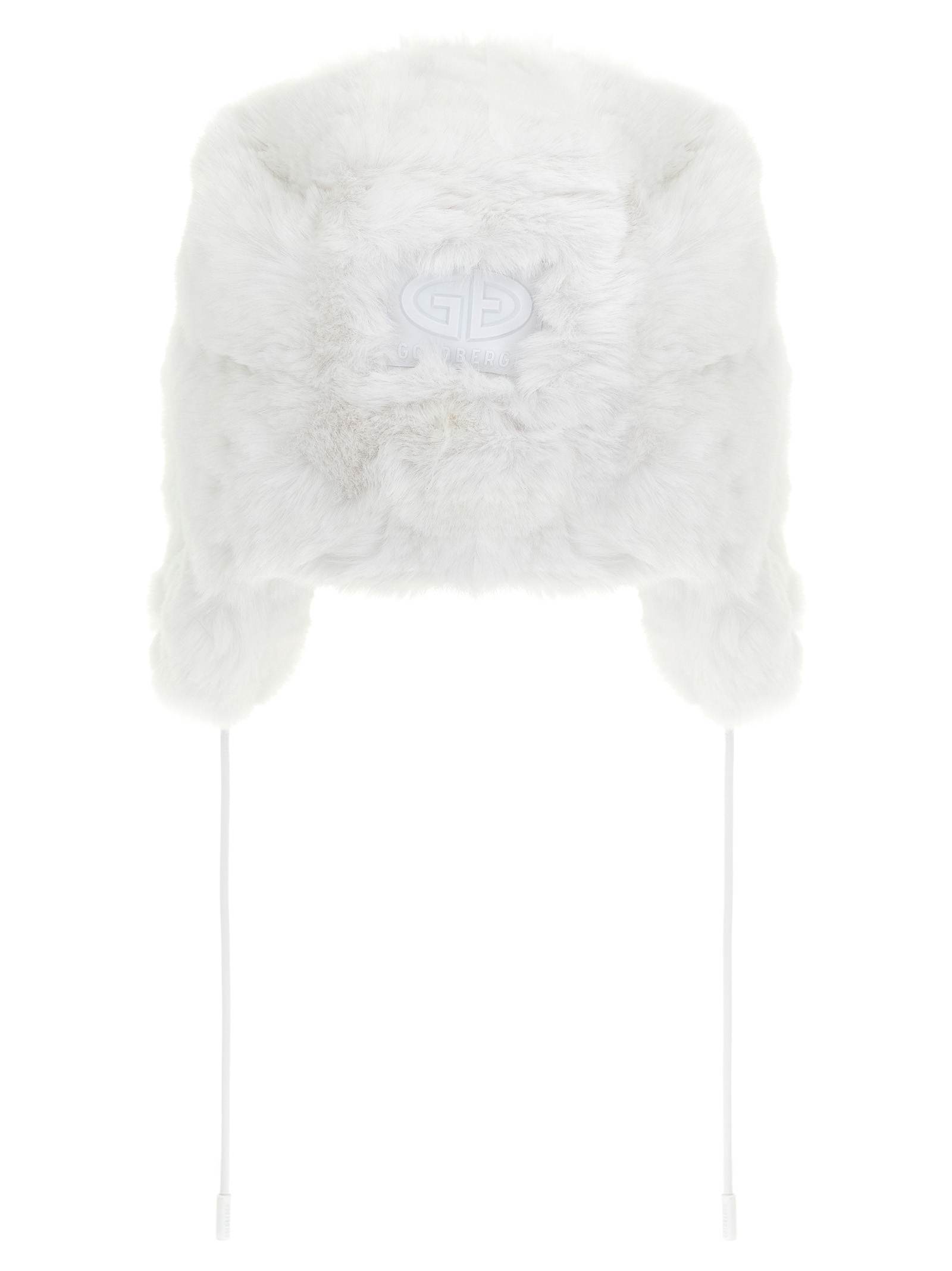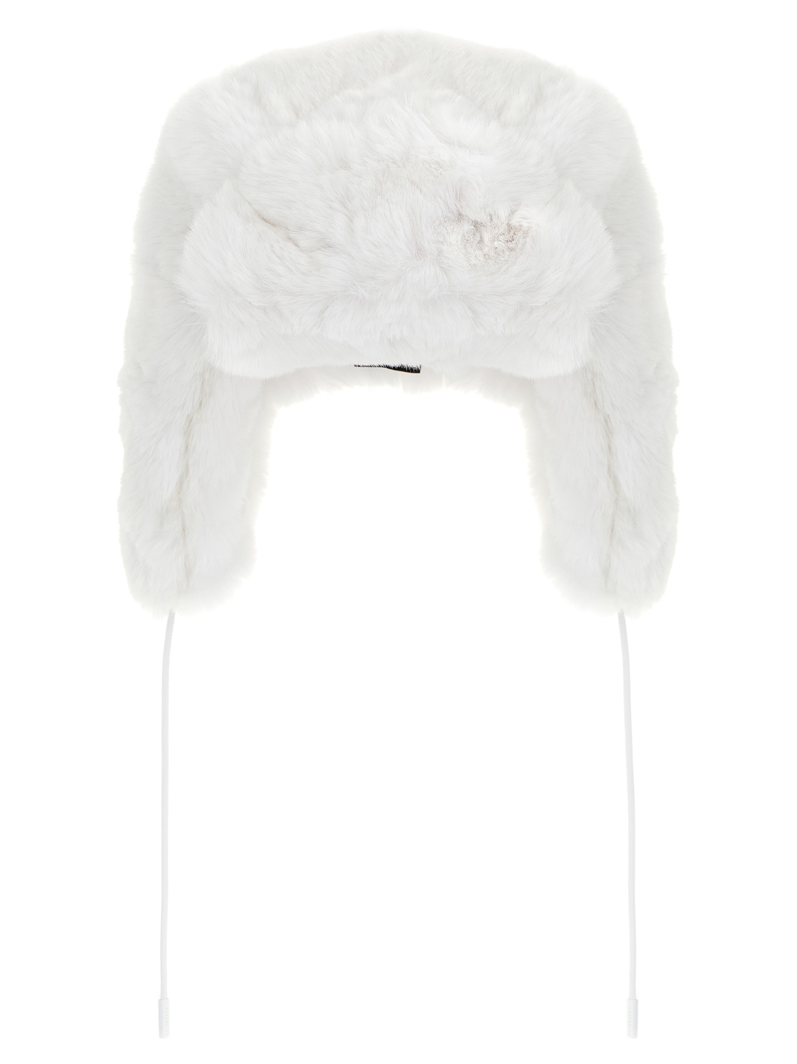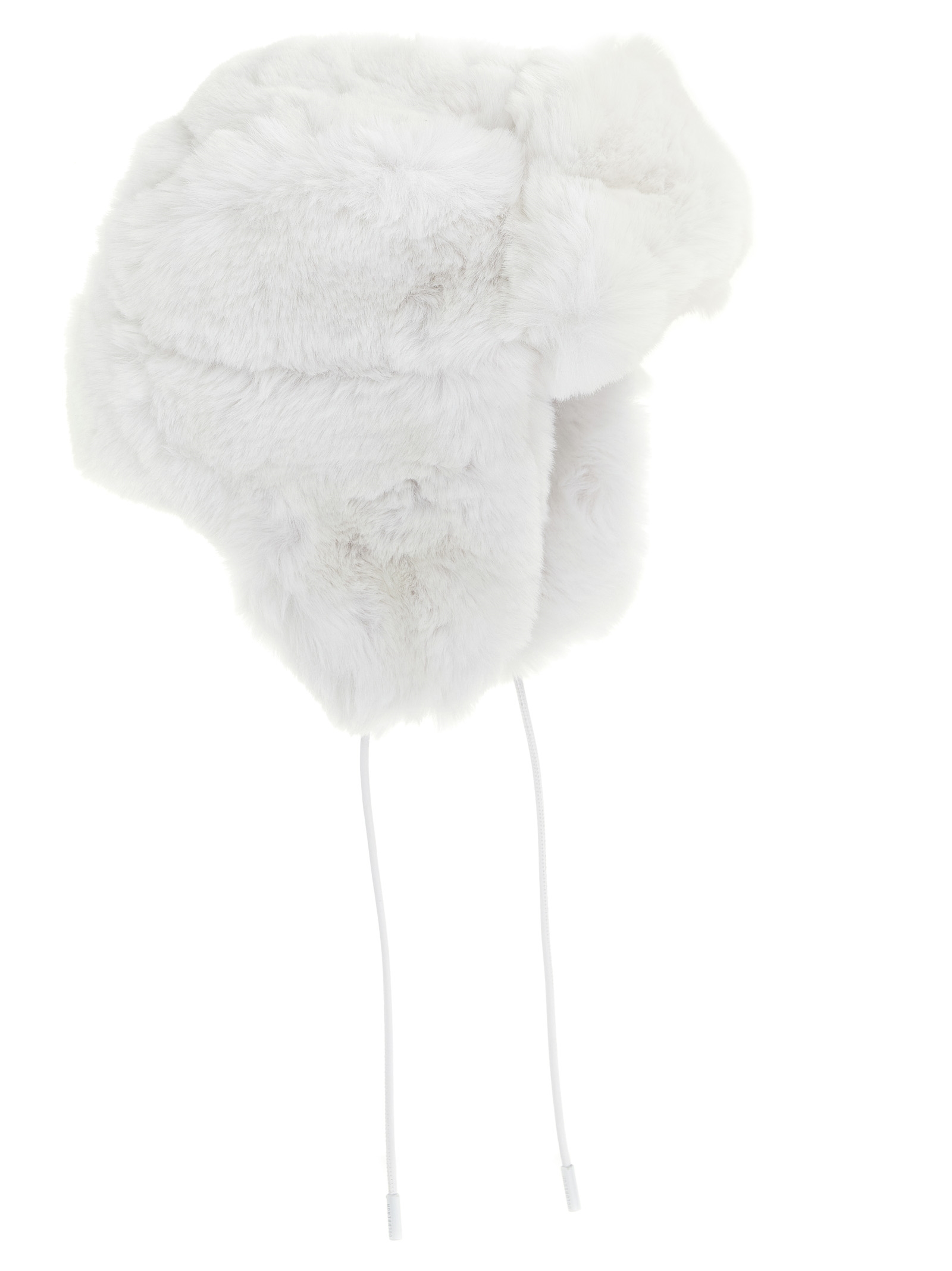 'Cher Fluffy Aviator' hat in fur-effect fabric, aviator model with IMI leather ear cover and cord, tone-on-tone silicone logo patch on the back, lining.